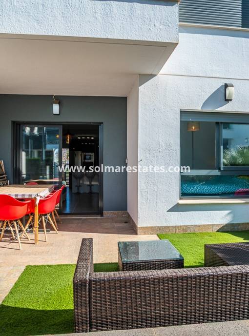 Diese schöne Penthouse-Wohnung in einer exklusiven Wohnanlage von Lo Romero Golf wird in ausgezeichnetem Zustand mit atemberaubender Aussicht auf die Landschaft und das Meer in der Ferne angeboten. Das Anwesen liegt nur 5 Autominuten von einer Vielzahl von Geschäften und örtlichen Annehmlichkeiten in Pilar de la Horadada und nur etwa 15 Autominuten von den schönen Stränden der Costa Blanca entfernt. Dieses schöne Anwesen verfügt über 2 Doppelschlafzimmer, ein Familienbadezimmer sowie ein eigenes Bad zum Hauptschlafzimmer. Offener Wohnbereich, der zu einer modernen Einbauküche führt. Es gibt einen kleinen Abstellraum und ein sehr geräumiges Solarium auf dem Dach mit fabelhafter 360-Grad-Aussicht auf die Umgebung. Es gibt einen privaten Parkplatz und einen einladenden Gemeinschaftspool und Gärten. Das Anwesen wird voll möbliert und in ausgezeichnetem Zustand angeboten. Kontaktieren Sie unser Team für eine baldige Besichtigung!