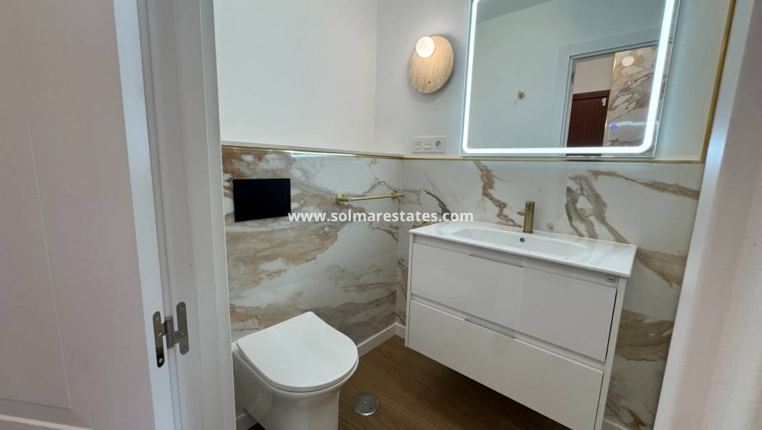 Dieses komplett renovierte Eck-Penthouse mit 2 Schlafzimmern und 1 Badezimmer in Punta Prima bietet eine außergewöhnliche Kombination aus Privatsphäre, modernem Design und atemberaubendem Panoramablick, nur 500 Meter vom Mittelmeer entfernt.