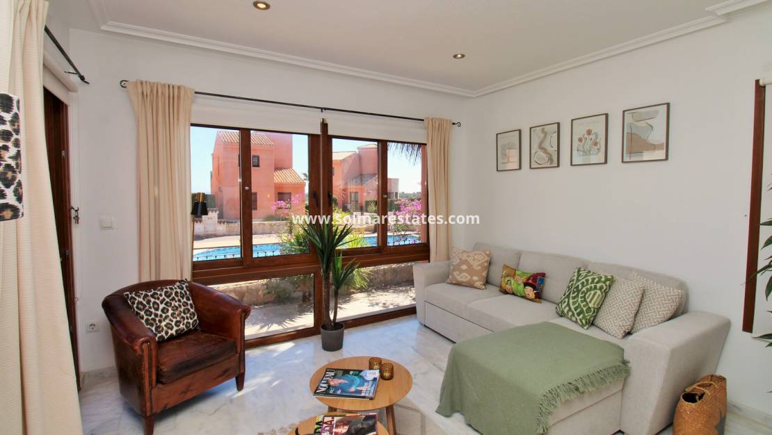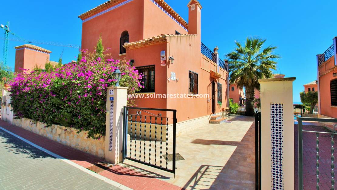 Diese außergewöhnliche, freistehende Villa mit 3 Schlafzimmern befindet sich in bester Lage direkt am Pool innerhalb der exklusiven, bewachten Wohnanlage La Cañada in San Miguel de Salinas. Mit atemberaubendem Blick auf das Mittelmeer, ruhiger Umgebung und einem praktischen, durchdachten Grundriss vereint das Anwesen Komfort, Privatsphäre und das Leben im Freien auf perfekte Weise.