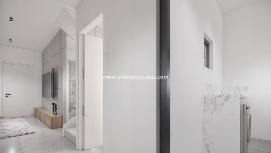 Moderne, neu gebaute Villen in La Herrada Los Montesinos mit privatem Swimmingpool Exklusives Wohnprojekt in ruhiger Lage Diese exklusive Wohnanlage mit 16 modernen Villen befindet sich in der prestigeträchtigen Wohngegend La Herrada in Los Montesinos und bietet Privatsphäre, Komfort und eine ausgezeichnete Lebensqualität. La Herrada ist bekannt für seine ruhige Wohnatmosphäre, die Nähe zu allen Annehmlichkeiten des täglichen Lebens und seine privilegierte Lage zwischen den berühmten Salinen von Torrevieja und La Mata. Es ist ein idealer Ort für diejenigen, die einen entspannten und gesunden mediterranen Lebensstil im Süden der Costa Blanca suchen. Zeitgenössisches Design mit optimierten Innenräumen Jede Villa verfügt über 130 m² gut aufgeteilte Wohnfläche auf zwei Etagen, die so gestaltet sind, dass sie natürliches Licht und Funktionalität maximieren. Die auf Grundstücken ab 250 m² erbauten Immobilien bieten großzügige Außenbereiche, die sich perfekt zum Sonnenbaden, Unterhalten oder Entspannen am privaten Pool eignen. Komfortable Aufteilung auf zwei Etagen Das Erdgeschoss verfügt über einen offenen Wohnbereich mit einer voll integrierten Küche und direktem Zugang zum Garten und Poolbereich. Auf dieser Etage befinden sich außerdem zwei Schlafzimmer, ein komplettes Badezimmer und ein praktischer Waschraum. Im Obergeschoss befinden sich zwei geräumige Schlafzimmer, jedes mit eigenem Badezimmer, eines davon en-suite. Beide Schlafzimmer haben Zugang zu einer 28 m² großen offenen Privatterrasse. Für diejenigen, die noch mehr Platz im Freien wünschen, gibt es gegen Aufpreis ein optionales Solarium auf dem Dach. Hochwertige Ausstattung und moderne Funktionen Die Villen verfügen über eine hochwertige Ausstattung wie Badezimmermöbel, Spiegel, Duschwände und Fußbodenheizung in allen Badezimmern. Es gibt eine Vorinstallation für eine Klimaanlage, ein motorisiertes Eingangstor für Fahrzeuge, einen privaten Parkplatz auf dem Grundstück und einen geschlossenen Zugang zur Wohnanlage über eine private interne Straße. Erstklassige Lage in der Nähe wichtiger Annehmlichkeiten und Sehenswürdigkeiten Die Strände von Guardamar und Torrevieja sind 9 km entfernt La Marquesa Golf, La Finca Golf und Vistabella Golf sind weniger als 5 km entfernt Der Flughafen Alicante ist 29 km entfernt Naturparks, Salinen, Radwege und Wanderwege in der Umgebung Komfortables Wohnen im Herzen der Costa Blanca Diese neu gebauten Villen in Los Montesinos bieten die perfekte Kombination aus modernem Komfort, natürlicher Umgebung und ausgezeichneter Erreichbarkeit. Ob Sie einen dauerhaften Wohnsitz oder ein Ferienhaus suchen, diese Wohnanlage bietet Ihnen alles, was Sie brauchen, um einen ruhigen und komfortablen mediterranen Lebensstil zu genießen. Kontaktieren Sie uns noch heute, um einen Besichtigungstermin zu vereinbaren und sich Ihr neues Zuhause in La Herrada zu sichern.