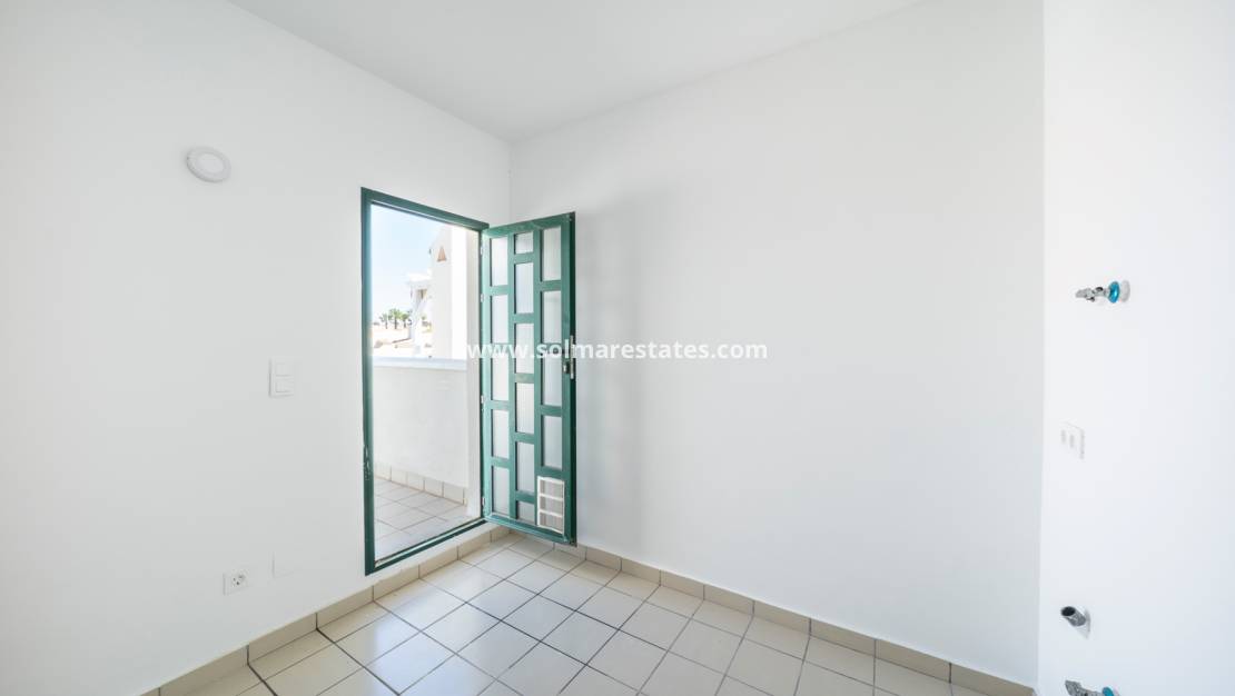 Vom Balkon führt eine Außentreppe zu einer großen, privaten Dachterrasse. Dieser beeindruckende Bereich umfasst einen Abstellraum und einen eingebauten Grillplatz und eignet sich perfekt zum Essen und Feiern im Freien. Von hier aus genießt man einen herrlichen Blick auf die Salzseen von Torrevieja und La Mata.
