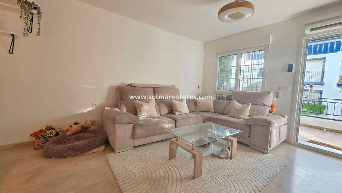Wunderschön präsentierte Eckwohnung im Erdgeschoss in der begehrten Gegend von Villamartín . Diese komplett renovierte Immobilie mit 2 Schlafzimmern und 2 Bädern (65 m²) vereint auf perfekte Weise modernes Interieur mit einem traumhaften mediterranen Lebensstil.