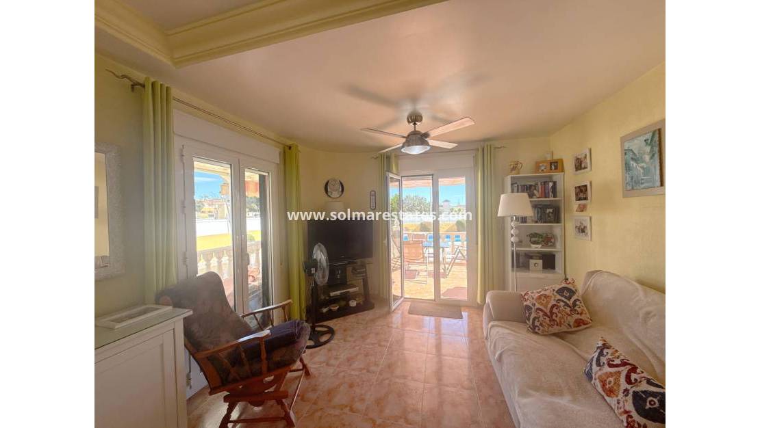 Freistehende Villa auf einem 400 m² großen Grundstück in Cabo Roig mit praktischer Raumaufteilung, privatem Außenbereich und guter Anbindung an die örtliche Infrastruktur und die Küste.