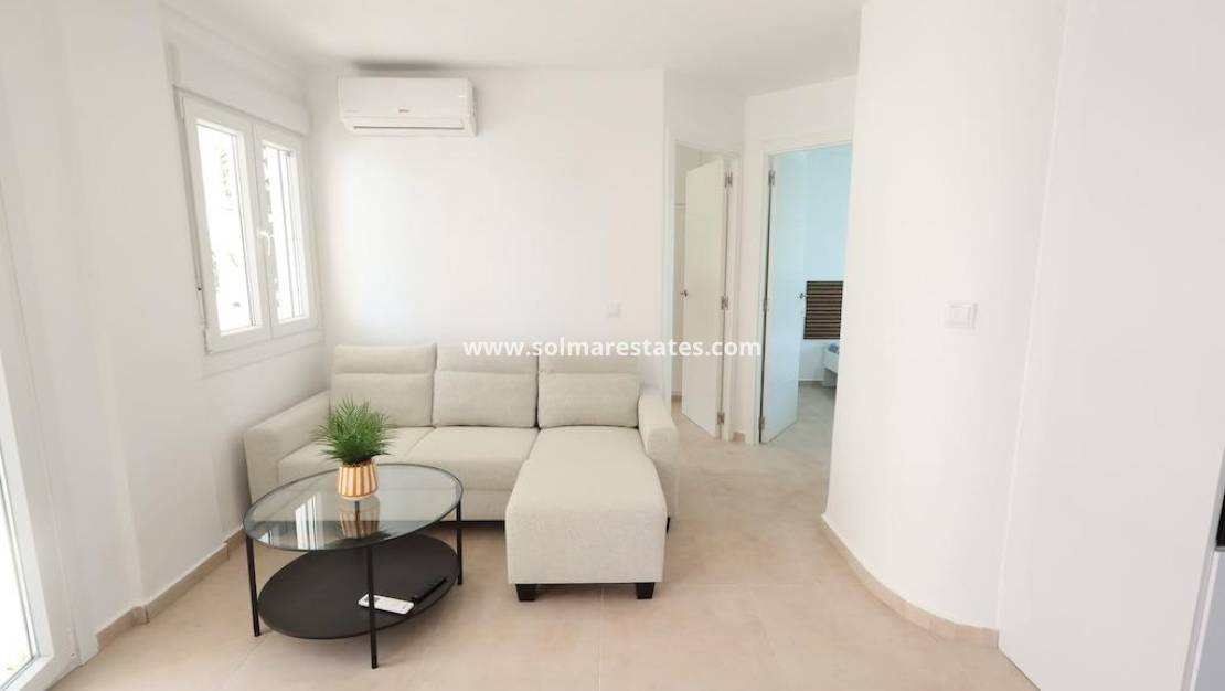 Es verfügt über eine private Terrasse, die sich ideal zum Entspannen im Freien eignet. Das Haus wird komplett möbliert und mit Klimaanlage verkauft.
