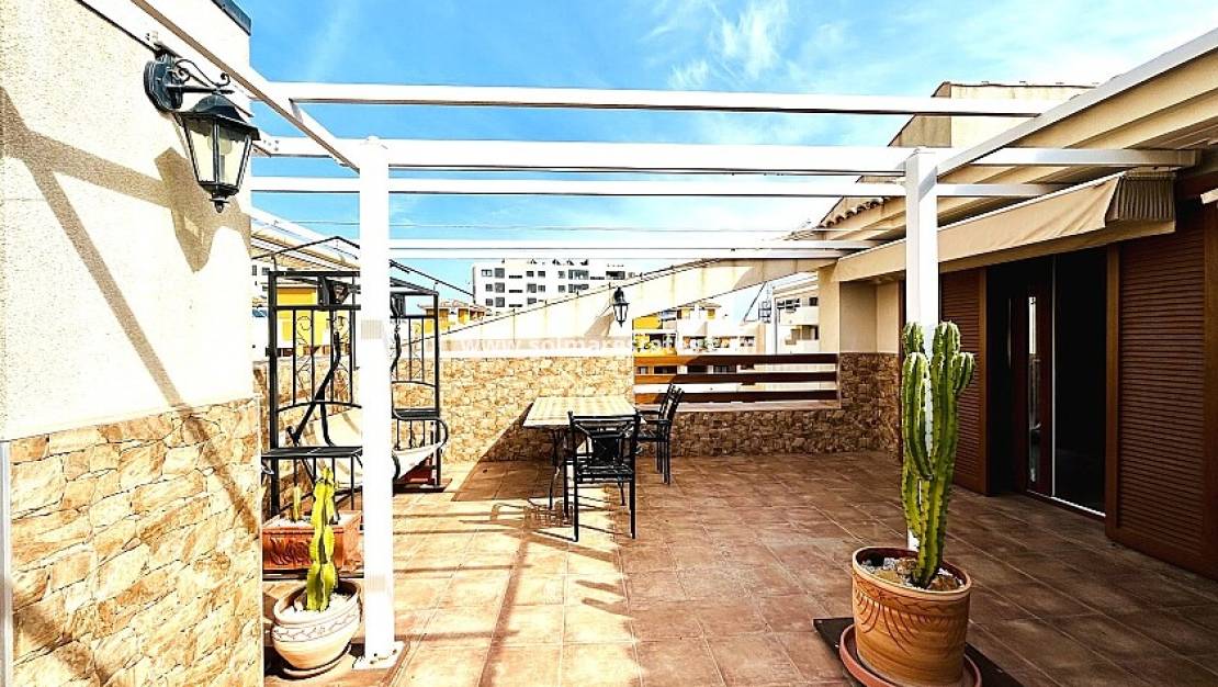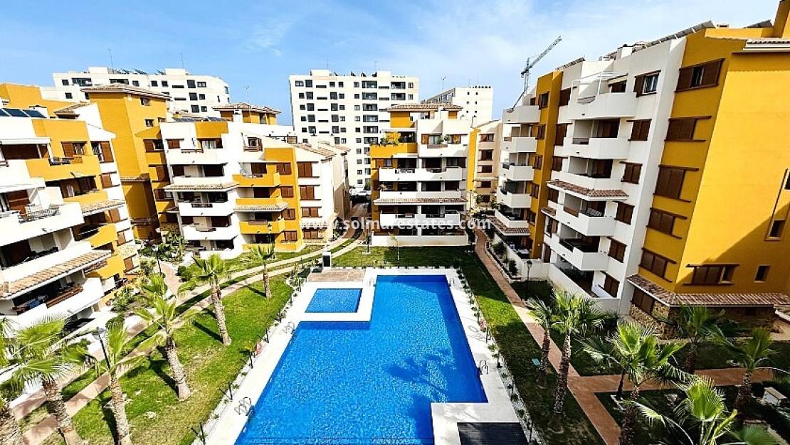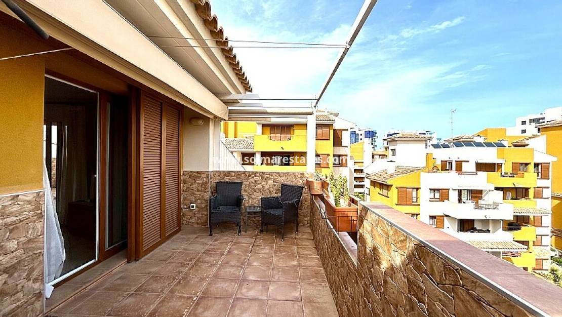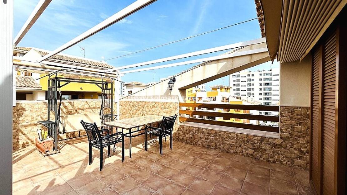 Penthouse mit 2 Schlafzimmern, Terrasse und Solarium in Punta Prima. Penthouse mit 2 Schlafzimmern und privatem Solarium in Punta Prima. Dieses nach Osten ausgerichtete Haus verfügt über ein Wohnzimmer mit Kochnische, 1 Badezimmer, eine vordere Terrasse mit Blick auf die Gärten und den Gemeinschaftspool sowie ein privates Solarium. Von der Terrasse und dem Solarium hat man einen schönen Blick auf den Pool und die gemeinschaftliche Grünfläche. Es verfügt über eine Klimaanlage, Einbauschränke, Fußbodenheizung in den Bädern, Jalousien und eine Alarmanlage. Es ist in gutem Zustand, wird mit Möbeln und Geräten verkauft und verfügt außerdem über Parkplätze und einen Abstellraum in der Tiefgarage. Das Haus befindet sich in einer Wohnanlage mit Gartenbereich und ist 24 Stunden am Tag mit privatem Sicherheitsdienst bewacht, mit mehreren gemeinsamen Schwimmbädern, Freizeit- und Kinderbereichen. 250 Meter vom Strand entfernt, in der Nähe von Restaurants, Bars, Supermärkten und öffentlichen Verkehrsmitteln. Hervorragende Option für einen dauerhaften Wohnsitz, Urlaub oder kurz- oder langfristige Vermietung.