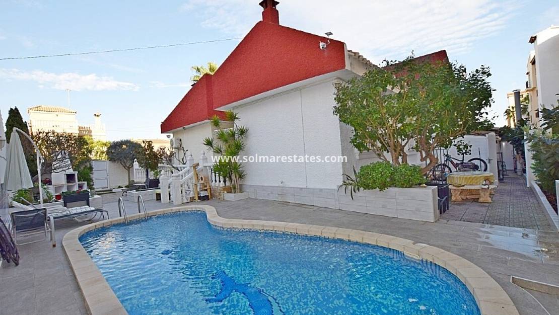 Geräumige Villa und Gästehaus mit 3 Schlafzimmern in Meeresnähe in Torrevieja. Geräumige Villa mit 3 Schlafzimmern und Gästehaus in der Nähe des Strandes Los Locos in Torrevieja Dieses Haus verfügt über 3 Schlafzimmer und 2 Badezimmer, Wohnzimmer mit Kamin, zwei Terrassen, privaten Pool, Zentralheizung und Hinterhof mit mehreren Abstellräumen. Es umfasst auch ein Gästestudio mit Wohnzimmer und Küche. Das gesamte Haus ist begrünt und verfügt über einen Grill. Nur wenige Meter vom Strand, Restaurants, Cafés, öffentlichen Verkehrsmitteln und anderen Dienstleistungen entfernt.