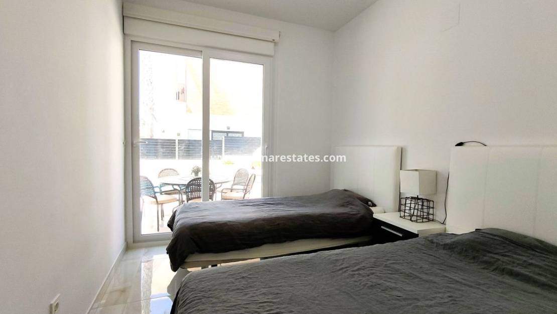 El nivel superior ofrece acceso a una gran terraza desde ambos dormitorios (ambos con baños en suite), que conduce al amplio solárium de la azotea. Desde aquí, disfrute de unas vistas panorámicas al mar incomparables, complementadas con una zona de barbacoa y un comedor al aire libre, ideal para relajarse o entretenerse mientras disfruta de la brisa mediterránea.