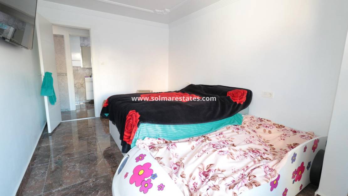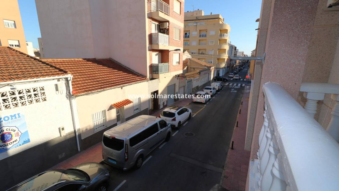 Apartamento en Torrevieja zona Centro, 131 m2 de superficie, a 1000 m. de la playa, 4 dormitorios dobles, 2 baños, propiedad reformada, cocina equipada, orientación este.~Extras: armarios empotrados, balcon, muebles, patio, terraza, autobuses, céntrico, centros comerciales, costa, supermercados~