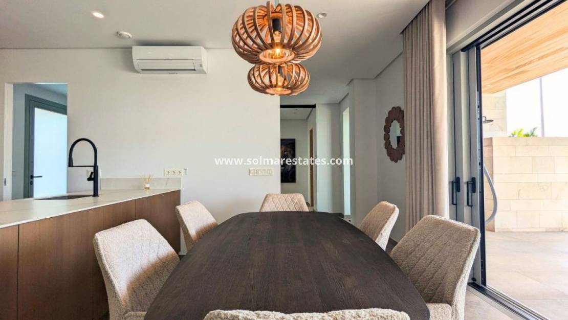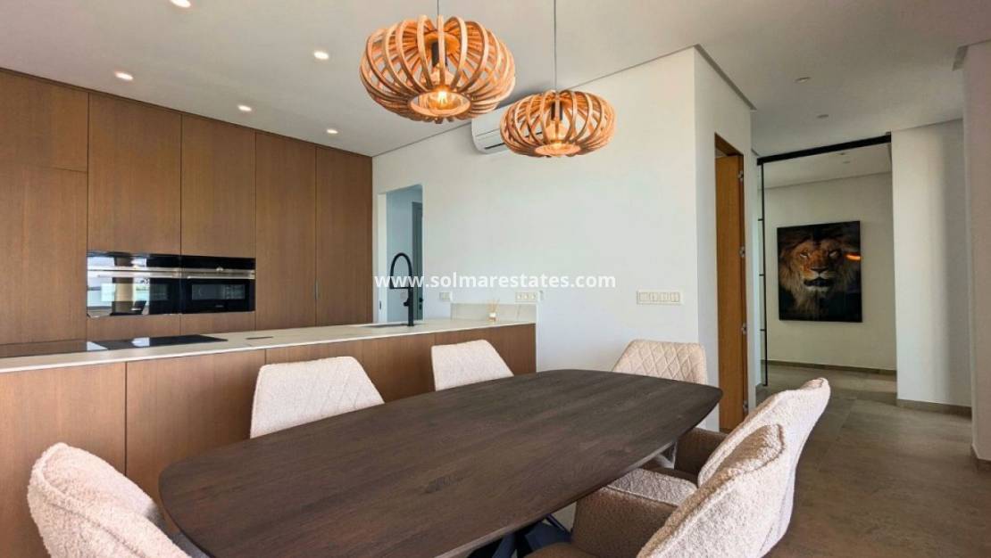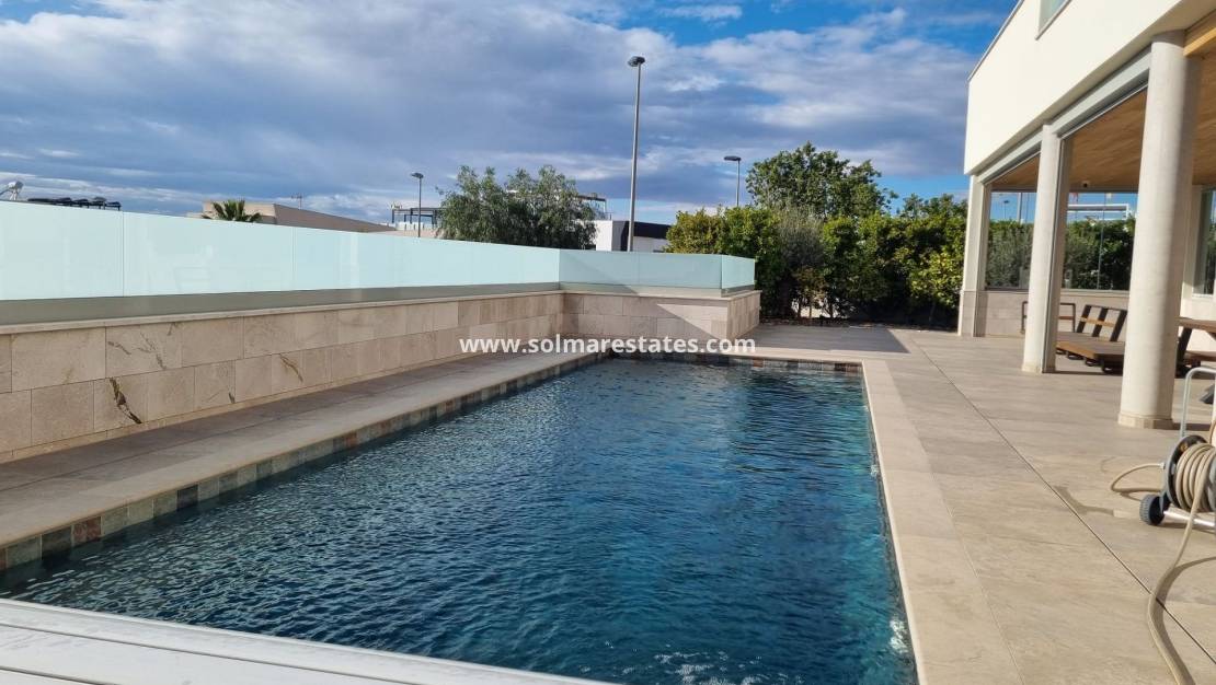 Aquí hay una descripción general de la villa. Al ingresar a la propiedad a través del garaje, tiene un área grande en la que puede estacionar fácilmente cuatro autos. A medida que camina más abajo, tiene mucho espacio de almacenamiento y luego tiene el sistema para la piscina climatizada de agua salada y un sistema de purificación de agua de última generación que proporciona agua purificada a través de la villa. Caminando más alrededor, tiene una escalera que lo lleva a la planta baja. En este nivel tiene un lavadero, un baño en la planta baja que siempre es útil, luego el primero de los cuatro dormitorios con su propio baño en suite y vestidores. A esto le sigue una gran sala de estar y cocina, que tiene mucha luz natural debido a las puertas corredizas de vidrio, que se deslizan en la pared y brindan acceso a la terraza inferior, la piscina y los jardines, lo que hace que la transición sea perfecta. Volviendo al interior, hay una escalera que lo lleva al nivel superior donde tiene un pasillo que brinda acceso a tres dormitorios grandes, cada uno con armarios empotrados y su propio baño con ducha. Hay acceso en este nivel a una terraza superior envolvente orientada al sur, que es un hermoso lugar para relajarse con una bebida, broncearse o simplemente disfrutar de las vistas, la elección es suya.