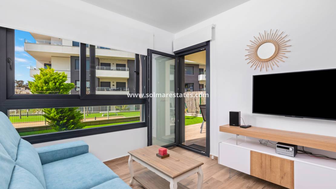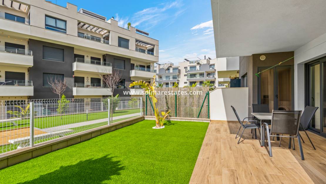 La propiedad se compone de un amplio salón, una cocina/comedor de planta abierta, persianas eléctricas, aire acondicionado (frío/calor) en toda la propiedad, un dormitorio principal con armarios empotrados y baño en suite, otro dormitorio de invitados con armarios empotrados y un segundo baño con ducha a ras de suelo. Las puertas del patio dan a una terraza privada (con un pequeño lavadero) para disfrutar del sol todo el día. También se incluye una plaza de aparcamiento privada asignada.