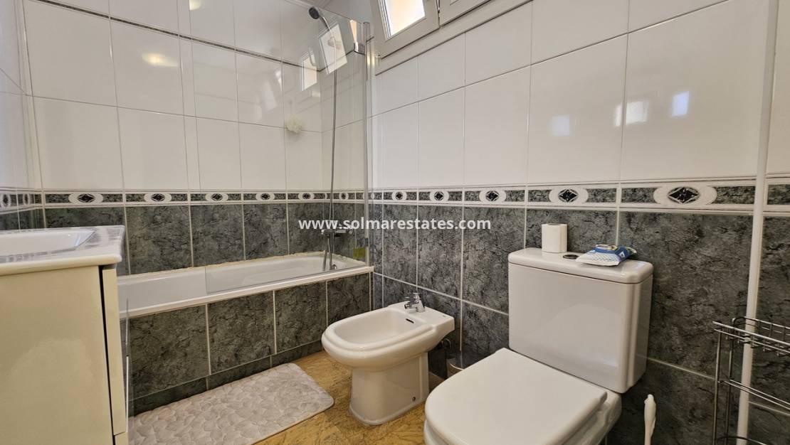 Oportunidad única de adquirir esta espectacular propiedad en Calas de Campoamor con vistas abiertas al mar, a tan solo 100 m de la playa. Esta villa de 3 dormitorios y 3 baños cuenta con una piscina climatizada de agua salada, instalada hace menos de dos años, además de solárium privado, garaje subterráneo y trastero. Ubicada en una urbanización cerrada, esta propiedad se ha mantenido con un alto estándar de calidad, con una elegante cocina a estrenar y atractivos suelos de mármol en toda la vivienda. En la planta baja se encuentra un fantástico salón-comedor con puertas correderas de suelo a techo que dan a la terraza alicatada y a la piscina, revestida con césped artificial. En la primera planta se encuentra el dormitorio principal con vistas al mar y baño en suite, junto con dos dormitorios dobles de invitados y el baño familiar, todos con vistas al mar o a la piscina comunitaria. En la planta superior se encuentra el fabuloso solárium con impresionantes vistas al Mediterráneo y al Mar Menor. La villa cuenta con garaje subterráneo y trastero, a los que se accede por una escalera interior, desde donde podrá acceder cómodamente a su coche y salir del complejo mediante puertas eléctricas. La casa forma parte de un complejo bien cuidado donde los propietarios también tienen acceso a la enorme piscina comunitaria y al bonito jardín. La propiedad se vende tal como se ve, completamente amueblada y con numerosos extras, como lavadero independiente, aire acondicionado nuevo en los dormitorios, electrodomésticos de cocina a estrenar, sistema de climatización de piscina con solución salina sin químicos, puertas de garaje automatizadas, intercomunicador, chimenea en el salón y barbacoa de obra en la terraza principal.