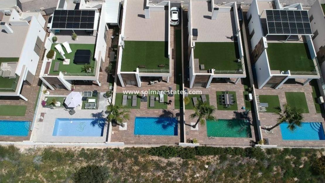 Ubicada en una parcela de 312 m² con orientación sur, cuenta con un jardín de fácil mantenimiento con piscina privada, zonas verdes y terrazas donde podrá relajarse y disfrutar de las hermosas vistas de los alrededores. La propiedad consta de 3 dormitorios, 2 baños (uno en suite) y un salón-comedor-cocina de concepto abierto con lavadero independiente. Además del amplio jardín, también dispone de un amplio solárium donde podrá disfrutar de las vistas e incluso ver el mar. La propiedad ha sido amueblada con materiales de alta calidad e incluye aire acondicionado centralizado, aparcamiento privado con portón eléctrico, persianas eléctricas en toda la casa y un trastero.