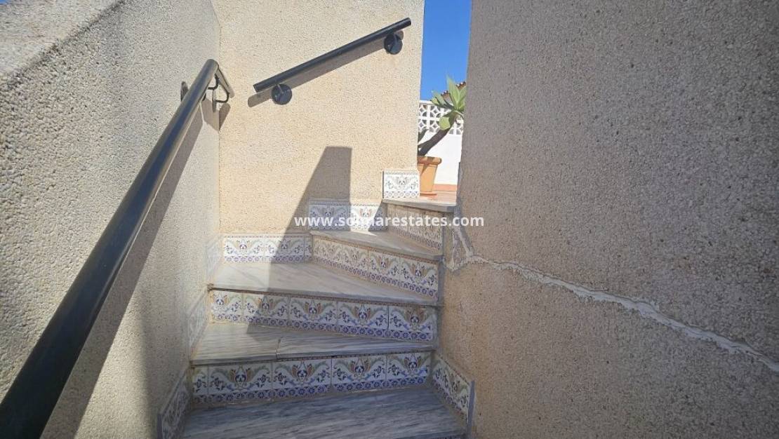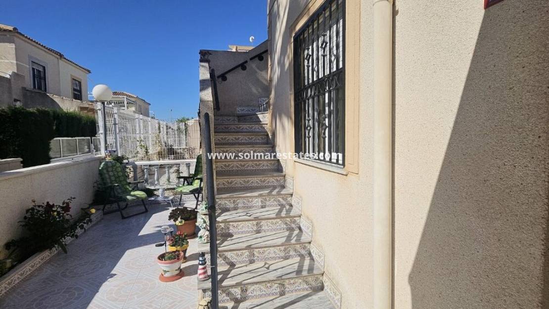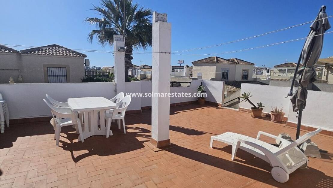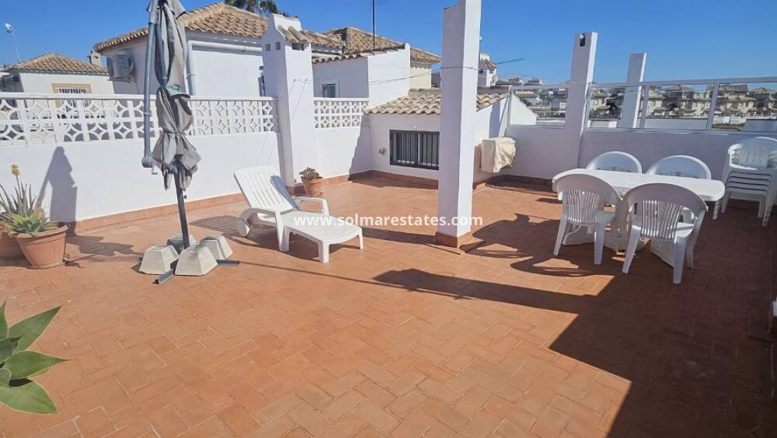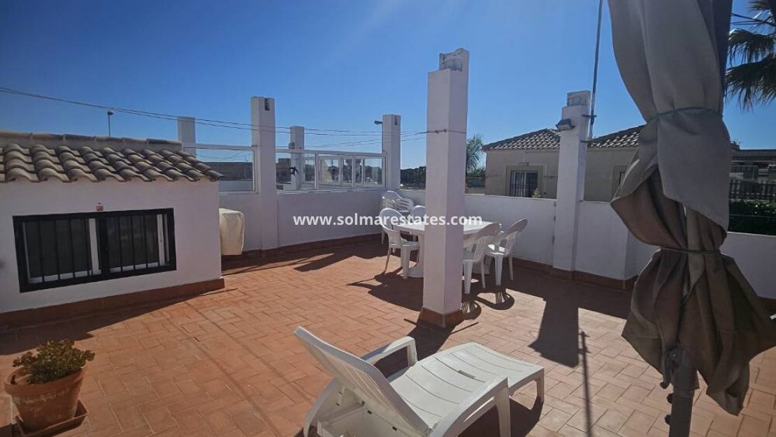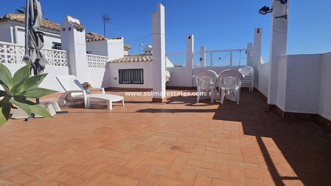 Un bungalow de 2 dormitorios y 1 baño con solárium privado en la azotea ubicado en Serena, Punta Prima, Costa Blanca Sur.