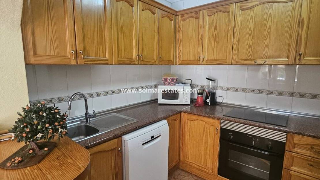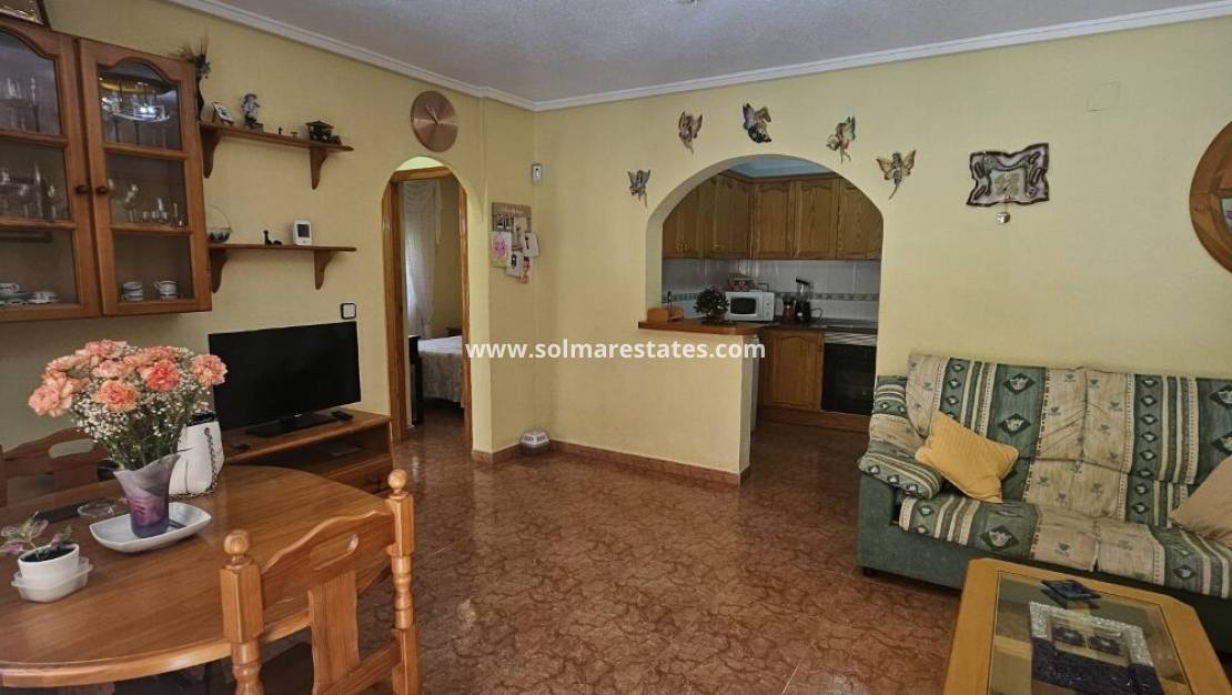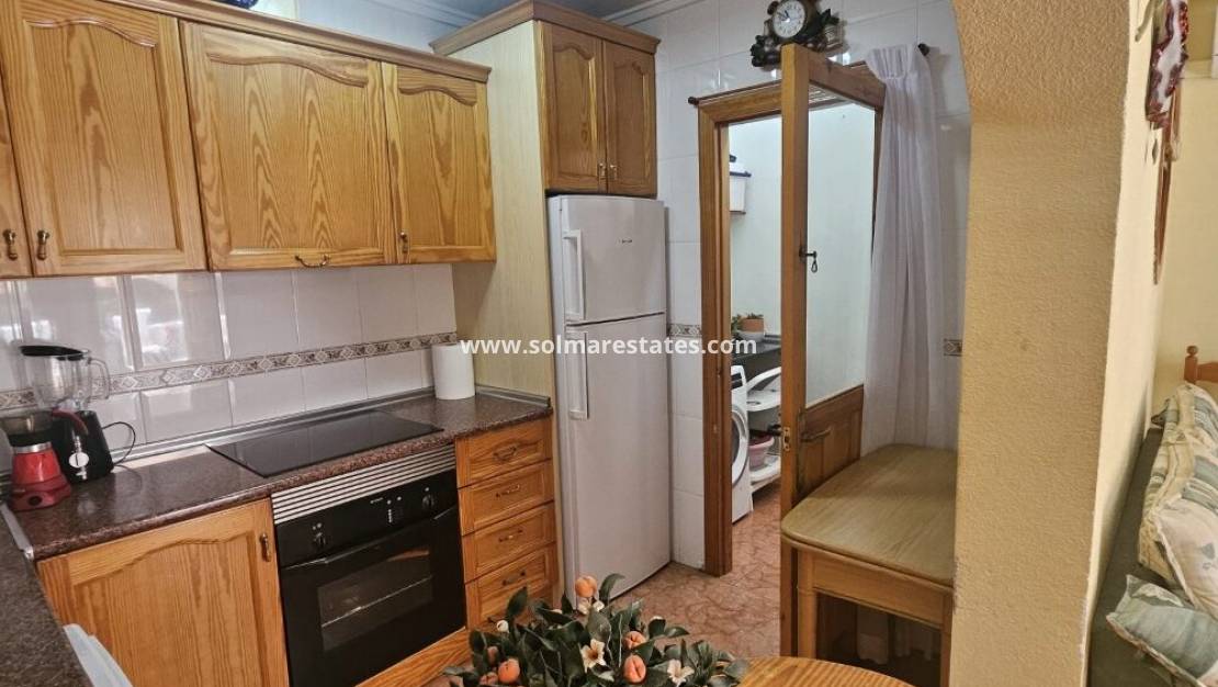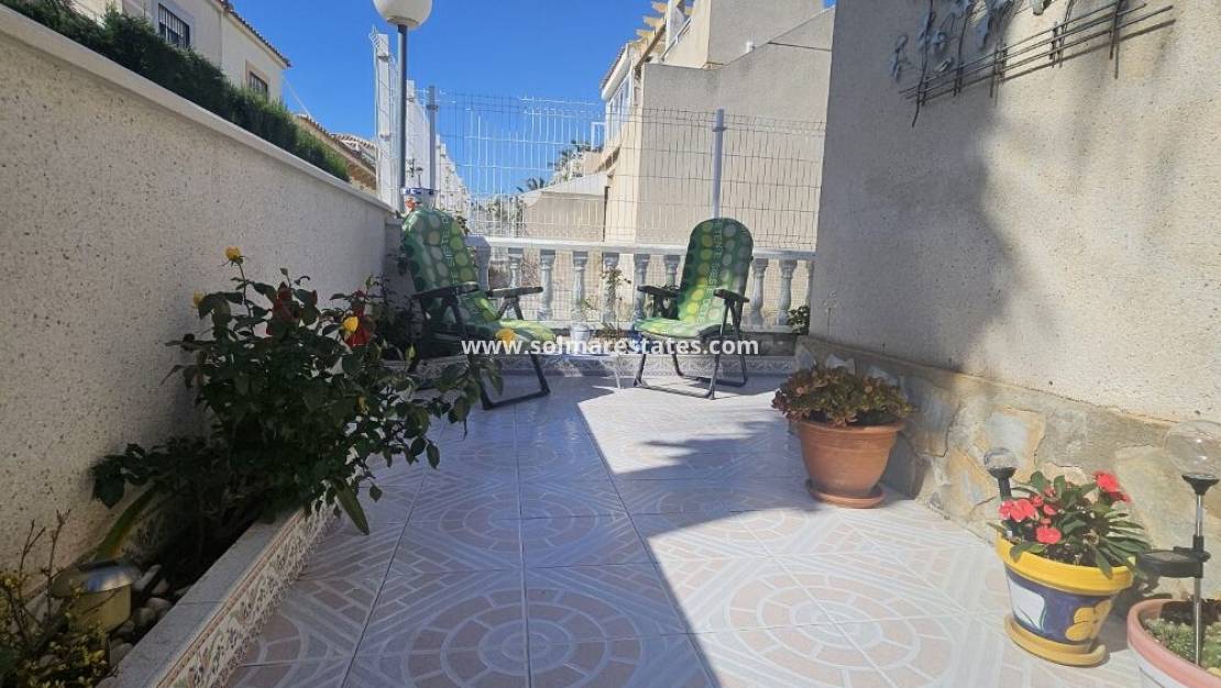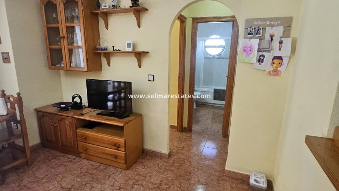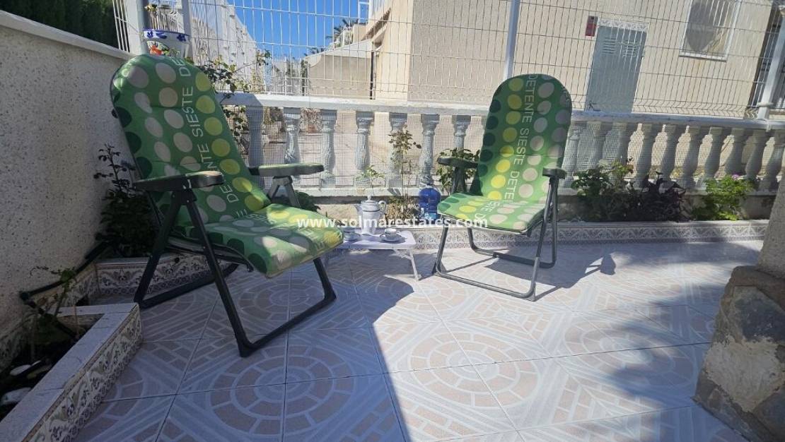 Un bungalow de 2 dormitorios y 1 baño con solárium privado en la azotea ubicado en Serena, Punta Prima, Costa Blanca Sur.