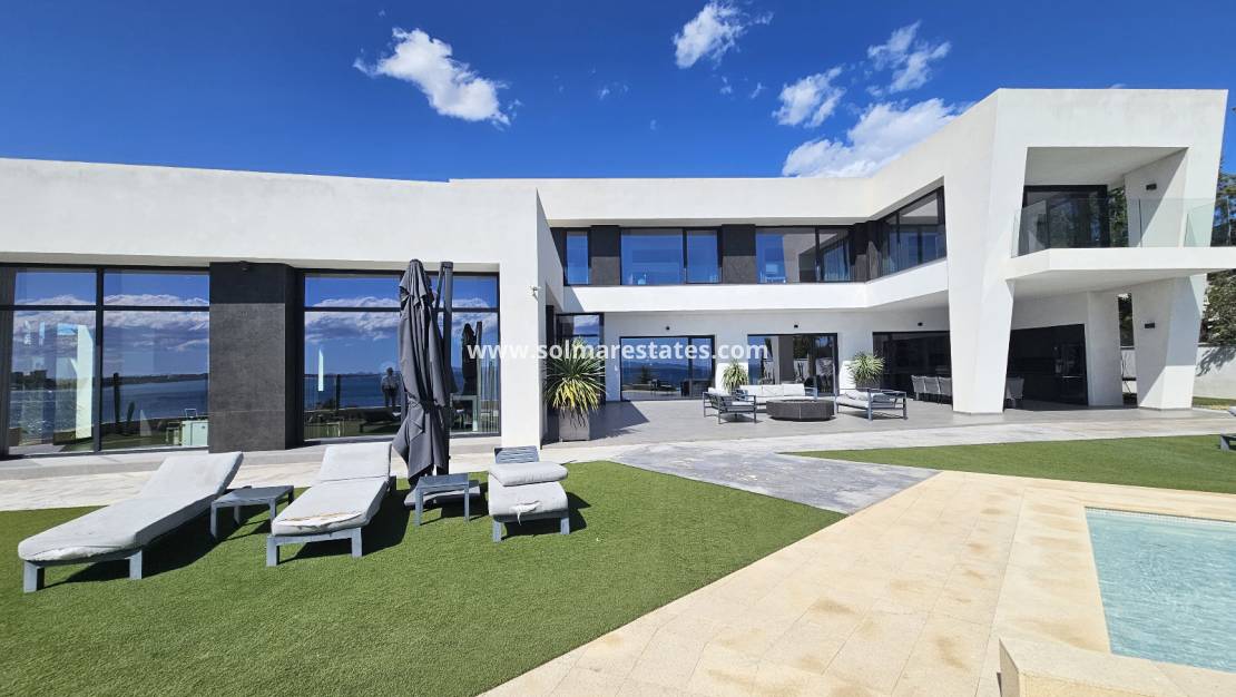 Una impresionante villa independiente de 4 dormitorios y 6 baños en una parcela de 1649m2 con piscina privada ubicada en primera línea del mar en Cabo Roig, Costa Blanca.