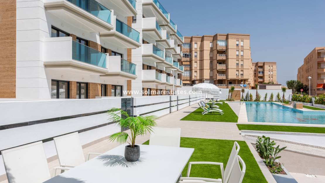 Imagina despertar cada mañana con el sonido del mar y vistas panorámicas que te invitan a relajarte. Este exclusivo apartamento de 2 dormitorios y 2 baños (uno en suite) ofrece precisamente eso y mucho más. Ubicado a tan solo 100 metros de la playa, en uno de los pueblos más codiciados de la Costa Blanca, Guardamar del Segura, esta casa es el refugio perfecto para disfrutar del estilo de vida costero.