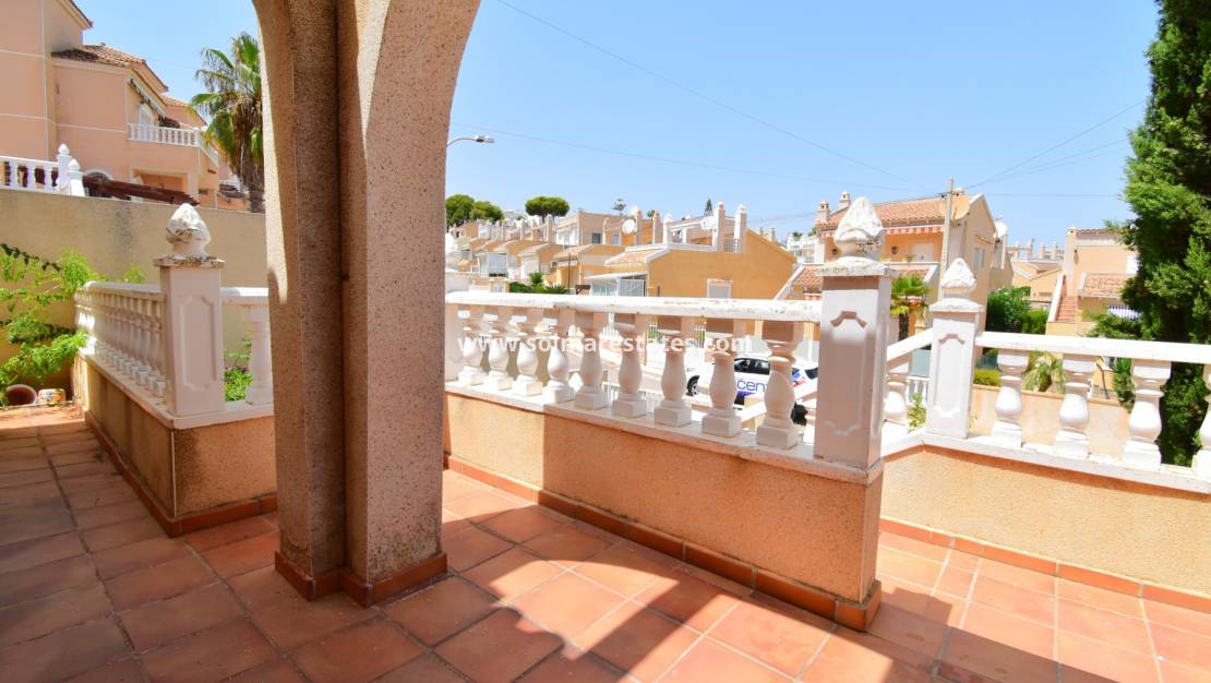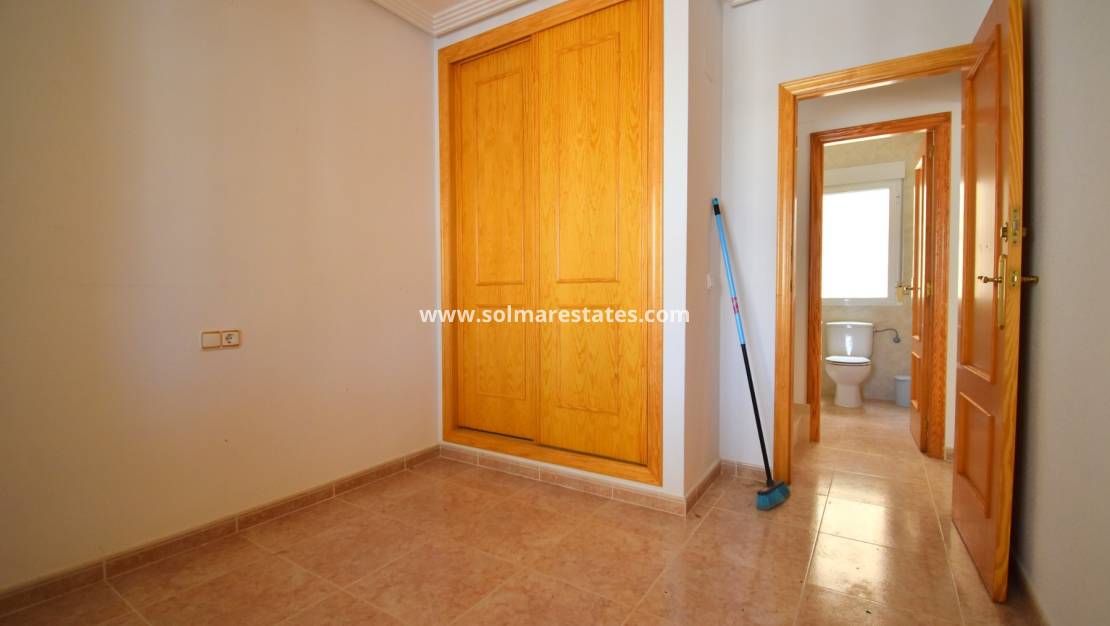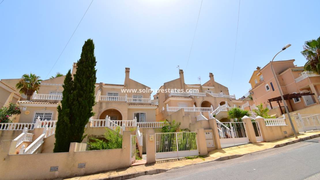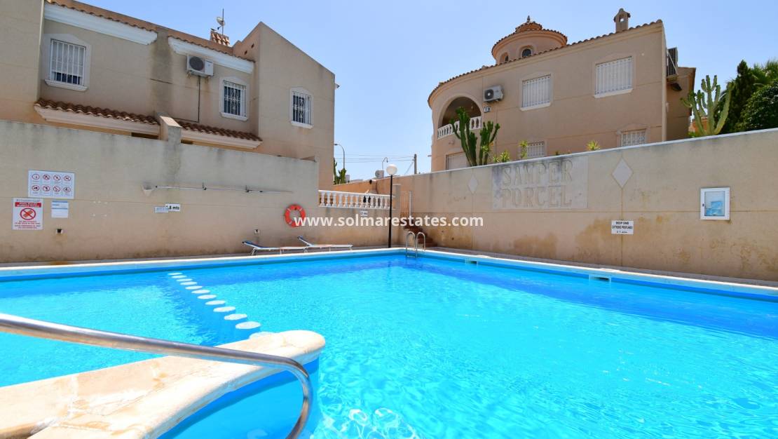 Espaciosa casa adosada de tres dormitorios en El Galán, ubicada a 10 minutos a pie de una variedad de restaurantes y cafeterías, con un supermercado de cadena y un centro comercial muy cerca. Los amantes del golf pueden elegir entre tres campos de golf de primera categoría a menos de 10 minutos en coche, y el popular centro comercial La Zenia Boulevard y sus impresionantes playas están a solo 10 minutos. Se accede a la villa mediante unas escaleras que conducen a una terraza cubierta, que se abre a un luminoso salón-comedor con una encantadora chimenea. La cocina equipada tiene una puerta que da acceso a un patio. En esta planta también hay un dormitorio doble y un baño con ducha. En la primera planta, hay dos dormitorios dobles más, ambos con sus propias terrazas privadas, y un baño familiar. El espacio exterior incluye aparcamiento privado embaldosado, jardín delantero, patio trasero embaldosado con borde de guijarros y acceso a una piscina comunitaria bien cuidada. También incluye ventiladores de techo y armarios empotrados en todos los dormitorios. Situada en una ubicación privilegiada en la Costa Blanca Sur, esta propiedad ofrece una fantástica combinación de comodidad, conveniencia y accesibilidad a servicios, golf y la costa.