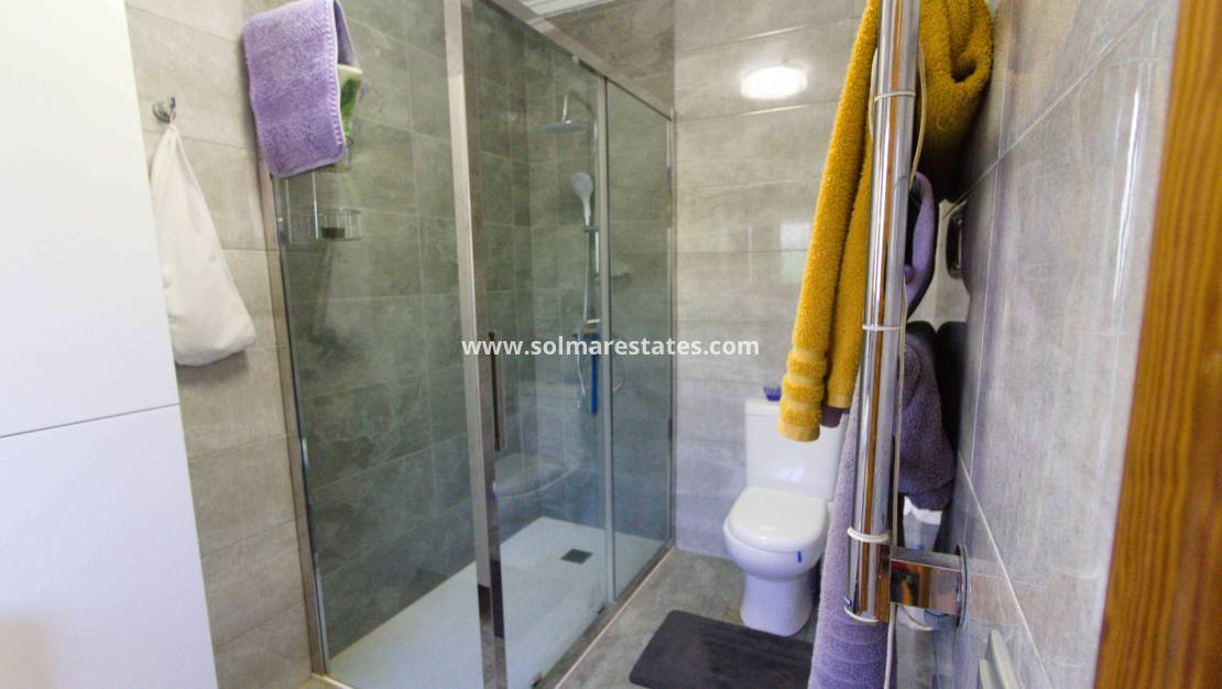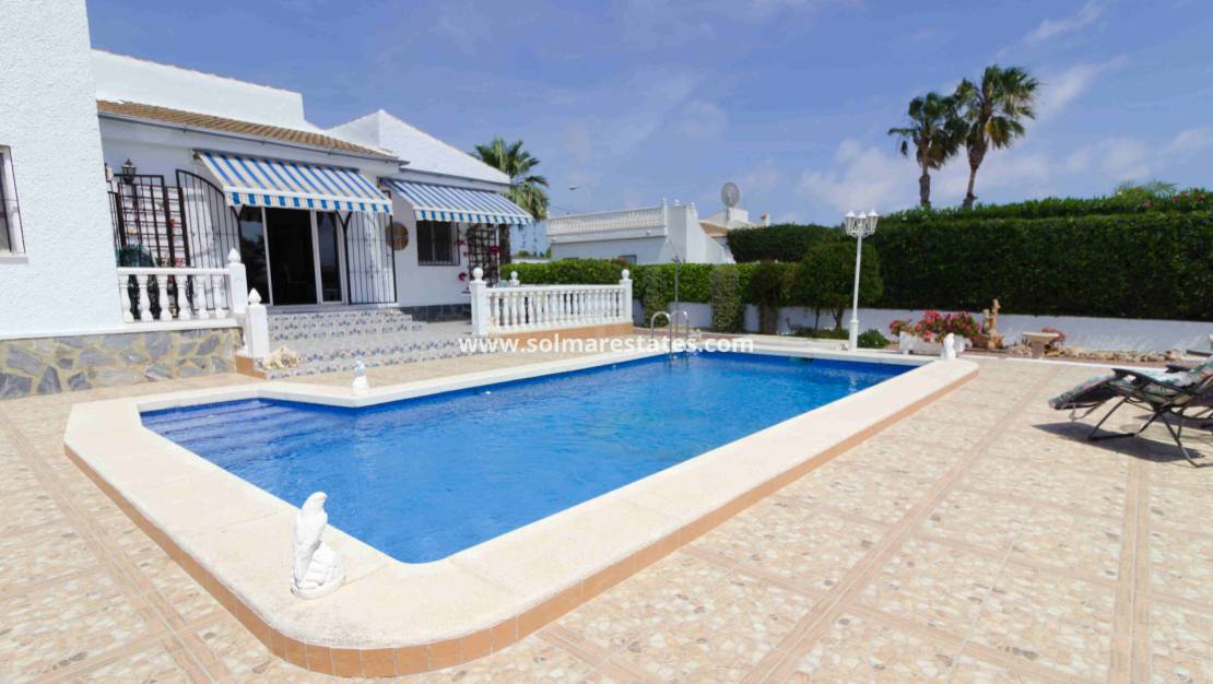 Esta villa se distribuye en un solo nivel y consta de; un salón / comedor de planta abierta de buen tamaño con puertas que dan a una maravillosa terraza ligeramente elevada con toldos que da a la piscina y las áreas del jardín, por lo que es un excelente lugar para relajarse o disfrutar de una cena al aire libre, una cocina abierta equipada con barra de desayuno y acceso directo al área de estacionamiento y la entrada principal de la propiedad, tres habitaciones dobles, la habitación principal con puertas que dan al jardín, además de un baño en suite con una moderna ducha a ras de suelo y un baño familiar también con ducha a ras de suelo.
