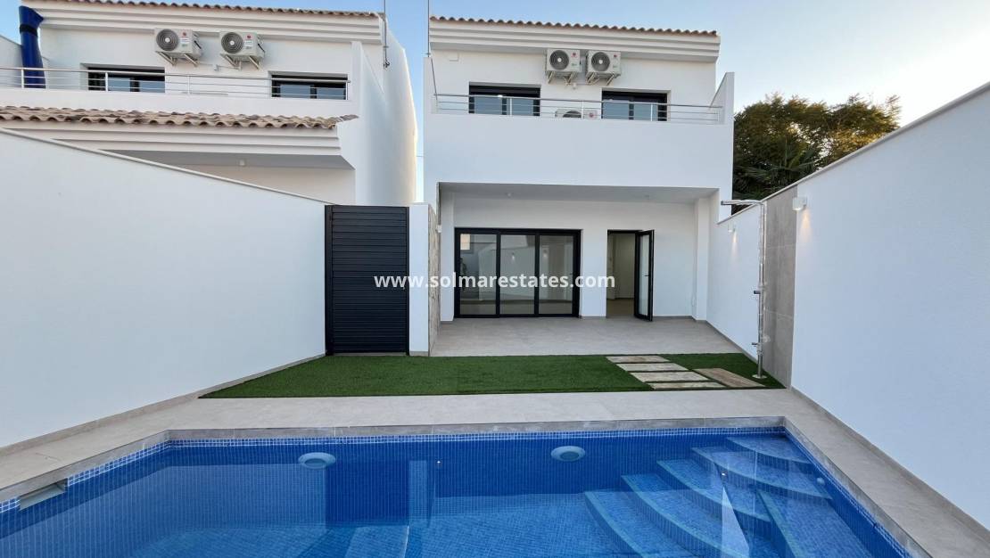 Villa nueva a estrenar con piscina privada a solo 500 metros de la playa en San Pedro del Pinatar Exclusiva nueva construcción en una ubicación privilegiada de la Costa Cálida Descubra esta excepcional villa de nueva construcción en San Pedro del Pinatar, a solo 500 metros de las playas de Villananitos. Esta propiedad lista para entrar a vivir ofrece una combinación perfecta de diseño moderno, acabados de lujo y una ubicación inmejorable en la codiciada Costa Cálida española. Tanto si busca una casa de vacaciones, una residencia para todo el año o una inversión de alto rendimiento, esta villa cumple con todas las expectativas. Amplia distribución con elegancia moderna Situada en una parcela de 240 m², esta villa ofrece una superficie construida de 145 m² distribuidos en dos niveles. Incluye: Tres amplios dormitorios, uno de ellos en la planta baja con baño en suite Dos baños completos con duchas a ras de suelo y materiales de primera calidad Un aseo de invitados en la planta baja Cocina abierta con electrodomésticos Bosch de alta gama Amplio y luminoso salón con vistas directas a la terraza de la piscina Cuatro terrazas ideales para disfrutar del aire libre y recibir invitados Cada espacio está diseñado para ofrecer comodidad, elegancia y funcionalidad, con un excelente aislamiento y aire acondicionado por conductos para controlar la temperatura durante todo el año. Piscina privada y vida al aire libre Disfrute al máximo de la vida mediterránea con su propia piscina privada, ducha exterior y múltiples terrazas para tomar el sol, leer o cenar al aire libre. La moderna iluminación exterior realza el ambiente, haciéndolo perfecto para relajarse por las noches bajo las estrellas. También hay aparcamiento privado dentro de la parcela y un gran lavadero interior con conexiones para lavadora, secadora y un sistema aerotérmico de bajo consumo para el agua caliente. Ubicación estratégica en la costa Situada en San Pedro del Pinatar, una encantadora localidad conocida por su auténtico ambiente español y sus modernas comodidades: Playa Villananitos - 0,5 km Centro comercial Dos Mares - 3 km Campo de golf de Roda - 7 km Puerto deportivo de Lo Pagán - 1,5 km Centro de Murcia - 47 km Cartagena: 34 km Esta privilegiada ubicación ofrece fácil acceso a playas, campos de golf, tiendas, restaurantes y principales medios de transporte, lo que la hace ideal tanto para el ocio como para la vida cotidiana. No se pierda esta oportunidad única Si sueña con una casa elegante y lista para entrar a vivir cerca del mar, esta villa en San Pedro del Pinatar es la elección perfecta. Póngase en contacto con nosotros hoy mismo para concertar una visita o solicitar más información.