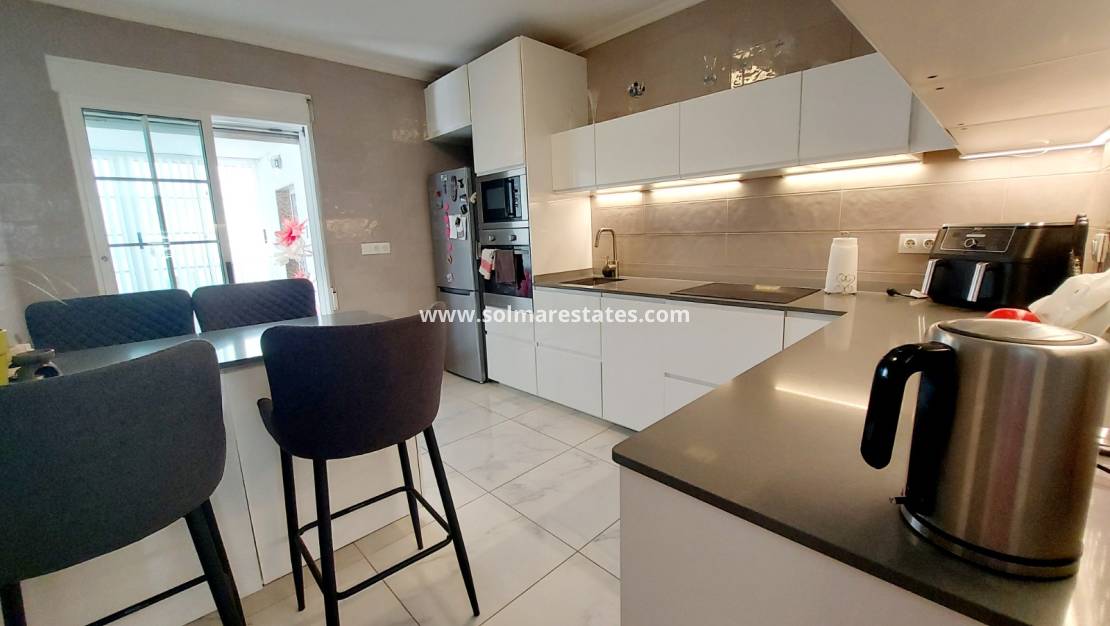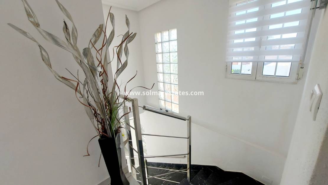 Descubra la casa de sus sueños entre Cabo Roig y La Zenia, a un corto paseo de la tranquila Cala La Caleta. Esta exquisita villa independiente ofrece lujo y comodidad inigualables. Ubicada en una amplia parcela de 450 m², la propiedad cuenta con piscina privada, entrada para coches y garaje, rodeada de hermosos jardines con múltiples zonas de estar y una cocina al aire libre, perfecta para el entretenimiento.