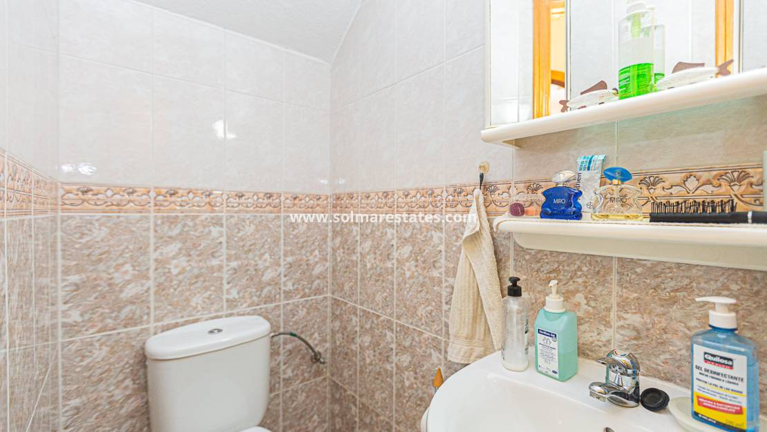Esta impresionante propiedad tipo quad se encuentra en una privilegiada parcela esquinera entre Playa Flamenca y La Zenia, en una urbanización cerrada con piscina comunitaria. La propiedad se encuentra en la parte exterior del complejo, lo que le proporciona mayor privacidad y luz natural.
