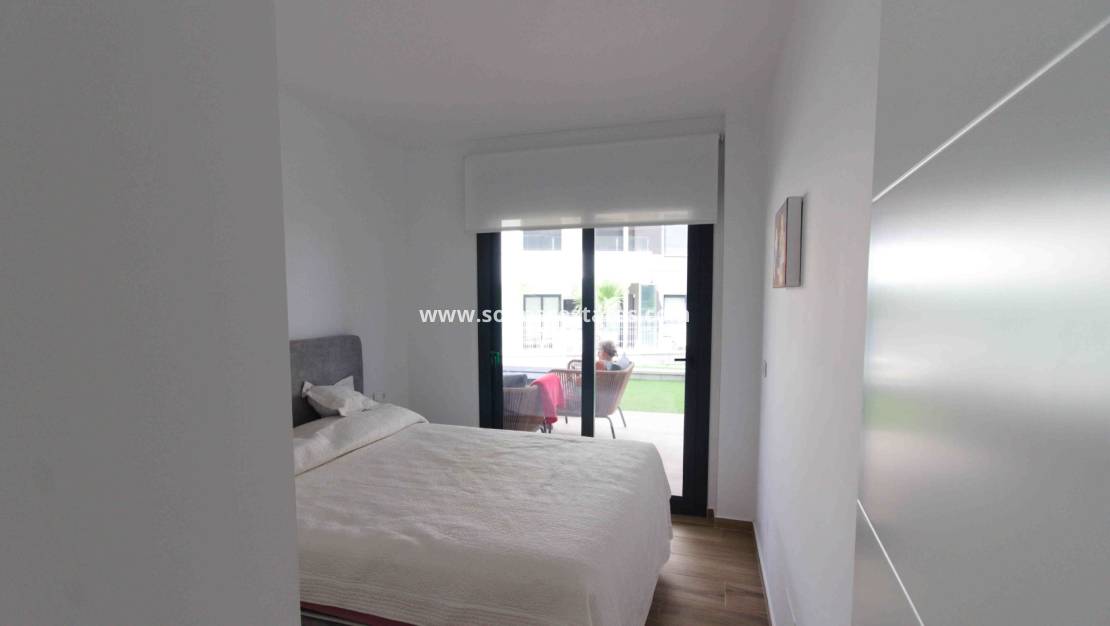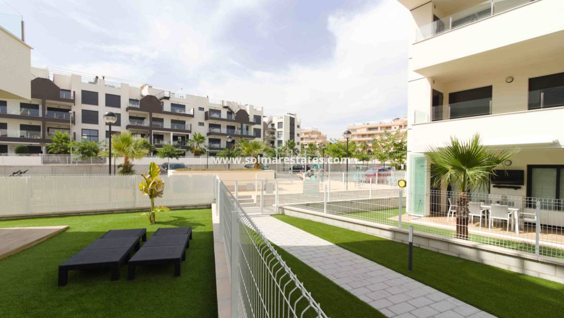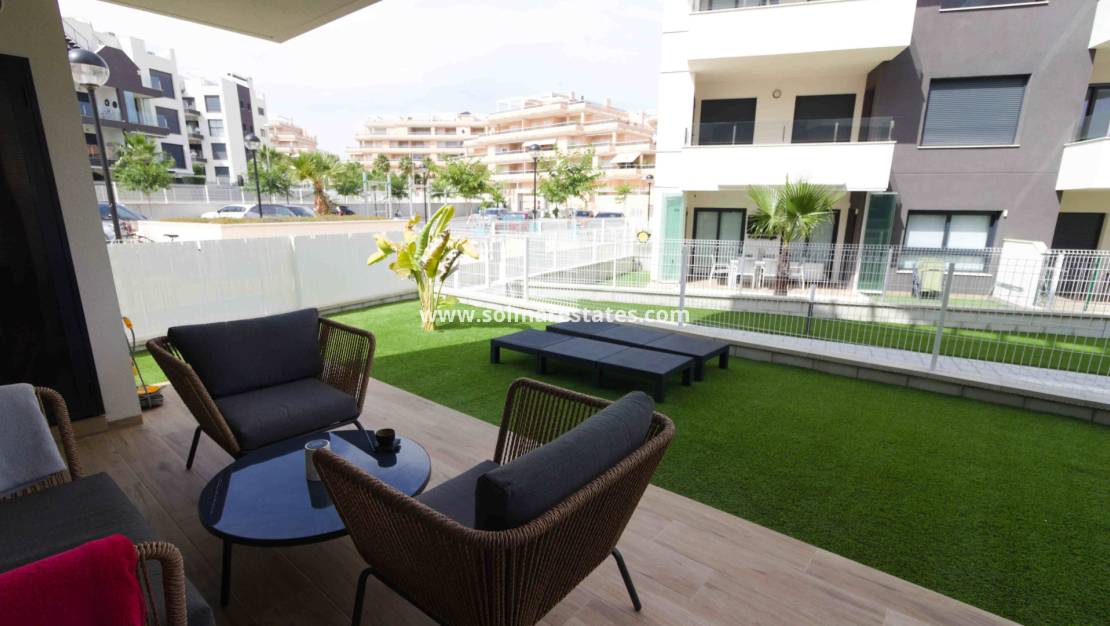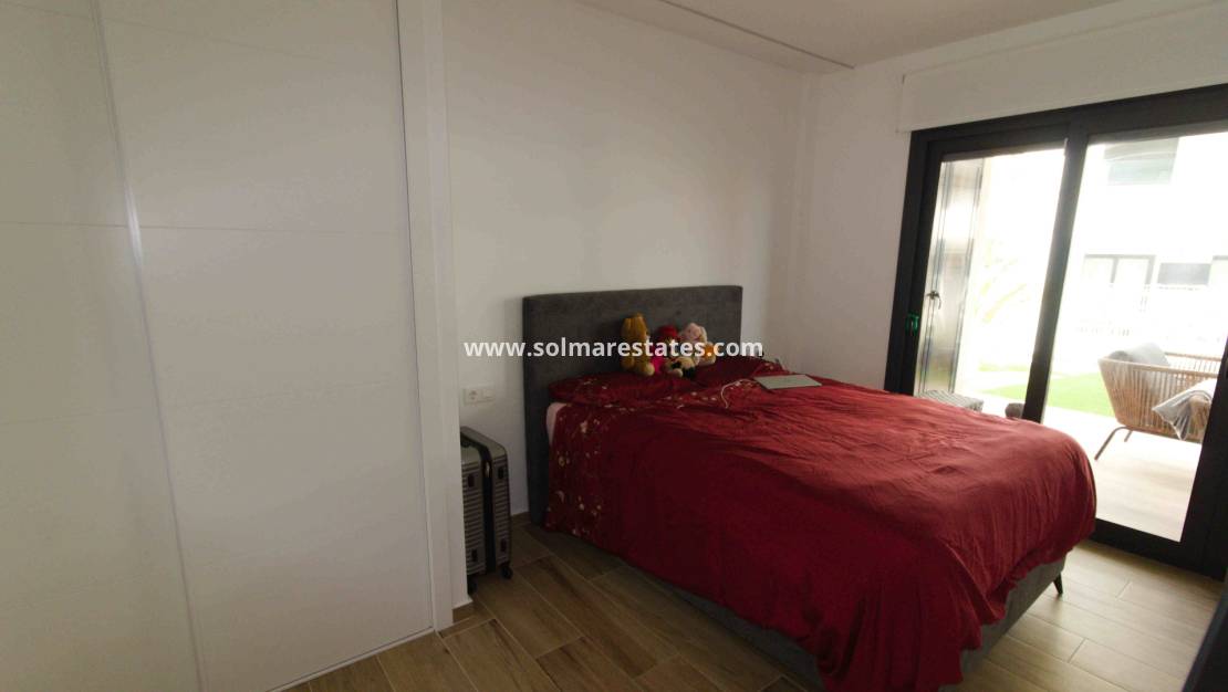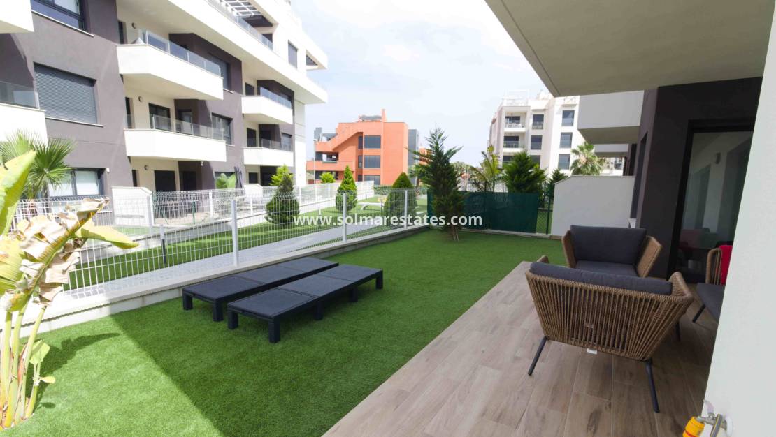 Salón comedor amplio y luminoso con puertas a la terraza cubierta, jardín delantero y lateral, cocina abierta totalmente equipada, 1 dormitorio principal con armarios empotrados y baño en suite, 1 dormitorio con dos camas individuales, 1 baño familiar, piscina comunitaria, estacionamiento comunitario, ascensor, área de juegos infantiles y mucho más.