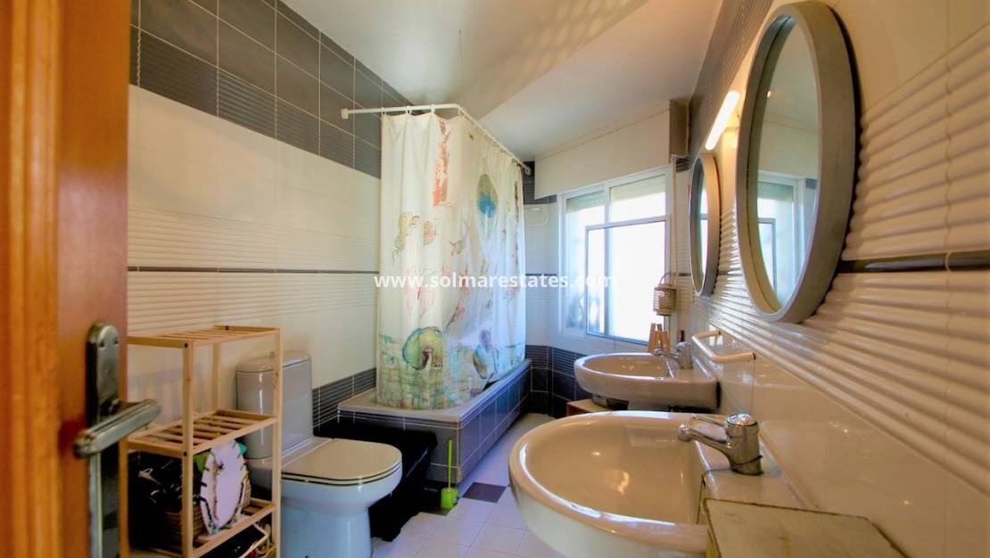En la planta superior hay cuatro dormitorios dobles más y un baño familiar. El dormitorio principal tiene baño en suite y acceso a una terraza con vistas al mar.