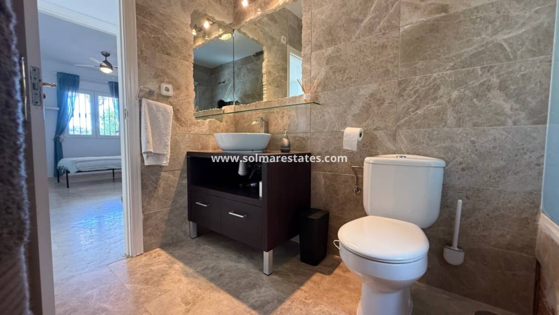 Esta villa independiente, impecablemente mantenida, ofrece 4 dormitorios y 2 baños en una ubicación privilegiada en primera línea con vistas al campo de golf de Las Ramblas. La propiedad cuenta con piscina privada, garaje y una terraza en la azotea, ideal para disfrutar de las impresionantes vistas.