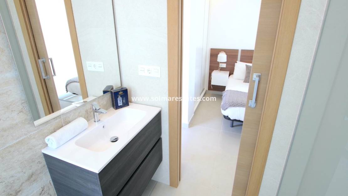 Zona de aterrizaje que conduce a una terraza solárium privada con impresionantes vistas a la Sierra de Callosa.