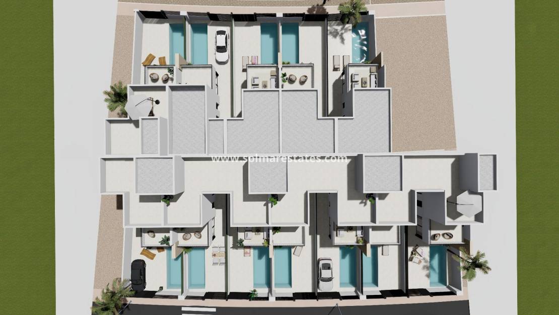 Modernas villas adosadas con piscina privada cerca del mar en Santiago de la Ribera Ubicada en la zona de San Blas en Santiago de la Ribera, Murcia, una de las zonas más atractivas del Mar Menor. Esta promoción está diseñada con 12 villas de 3 dormitorios y 2/3 baños, incluyendo piscina privada, terraza y solárium con cocina de verano en viviendas seleccionadas. Las villas cuentan con interiores elegantes y funcionales, cocinas totalmente equipadas con todos los electrodomésticos, y además, incluyen preinstalación de climatización por conductos. Esta promoción ofrece una oportunidad única para disfrutar de diseño, comodidad y estilo a solo unos minutos del mar. Exclusiva promoción de obra nueva a solo 1 km de la playa Descubra esta promoción de edición limitada de villas adosadas situadas en Santiago de la Ribera, una encantadora localidad costera de la costa murciana, conocida por su estilo de vida relajado, sus playas limpias y su excelente clima durante todo el año. Estas nuevas viviendas están situadas a solo 1 km de la costa del Mar Menor, ofreciendo la combinación perfecta de privacidad, comodidad y proximidad a los servicios esenciales y a las opciones de ocio. Diseño contemporáneo con distribución funcional Cada villa está distribuida cuidadosamente en dos plantas y algunas unidades disfrutan de un solárium en la azotea, lo que proporciona un amplio espacio para la vida moderna. Las propiedades cuentan con: 3 amplios dormitorios, incluyendo uno en la planta baja 2 o 3 baños completos. Jardín privado y piscina. Terraza en la primera planta y algunas unidades con solárium en la azotea, ideal para tomar el sol o recibir invitados. Aparcamiento privado dentro de la parcela. Además, dos de las viviendas disponen de instalación de placas fotovoltaicas para el ahorro de energía. Acabados y prestaciones de alta calidad Construidas con atención al detalle y según los estándares modernos, las viviendas incluyen: Puerta de entrada a vivienda acorazada Persianas de aluminio motorizadas Cocina amueblada con electrodomésticos Muebles de baño con espejo y luz Plato de ducha en porcelánico a medida del baño con mamparas instaladas Preinstalación de Aire Acondicionado por conductos Estas viviendas están diseñadas para disfrutar de todo el año, ya sea como residencia principal, segunda vivienda o inversión para alquiler vacacional. Ubicación privilegiada en la Costa Cálida Santiago de la Ribera ofrece un estilo de vida mediterráneo y dinámico con todo a mano: Playa (Mar Menor) – 1 km Centro comercial La Ribera – 2 km Roda Golf – 5 km Aeropuerto de San Javier – 6 km Puerto deportivo de Lo Pagán – 4 km Centro comercial Dos Mares – 3 km Excelente acceso por carretera a Murcia (40 km) y Cartagena (30 km) Con su rica cultura local, mercados semanales, paseos marítimos y opciones para practicar deportes acuáticos, Santiago de la Ribera es un lugar ideal para disfrutar de lo mejor de la Costa Cálida. Haga realidad su sueño de vivir en la costa No pierda esta oportunidad única de adquirir una elegante villa de nueva construcción en una de las zonas más codiciadas de la costa murciana. Póngase en contacto con nosotros ahora para obtener más información o concertar una visita.