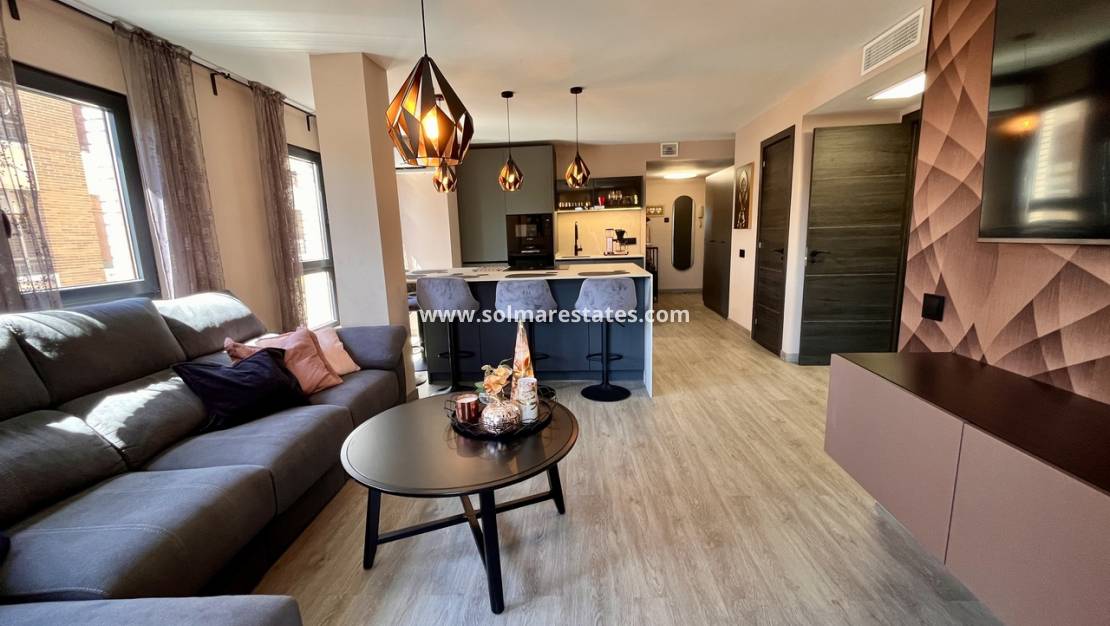 Este apartamento de 4 dormitorios y 2 baños, bellamente reformado, se encuentra en pleno corazón de Almoradí y ha sido renovado con los más altos estándares. Su moderna distribución diáfana incluye una elegante cocina con isla central, suelos laminados de vinilo impermeables en toda la vivienda y aire acondicionado por conductos para una mayor comodidad durante todo el año.