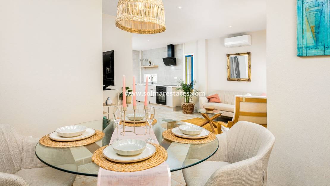 Esta hermosa casa renovada en Benimar está lista para entrar a vivir y ofrece una vida flexible con dos unidades independientes bajo un mismo techo. Recientemente pintada, la propiedad cuenta con dos cocinas nuevas equipadas con refrigeradores, placas vitrocerámicas, extractores y hornos. Incluye cuatro amplios dormitorios , dos baños y dos equipos de aire acondicionado nuevos para mayor comodidad durante todo el año.