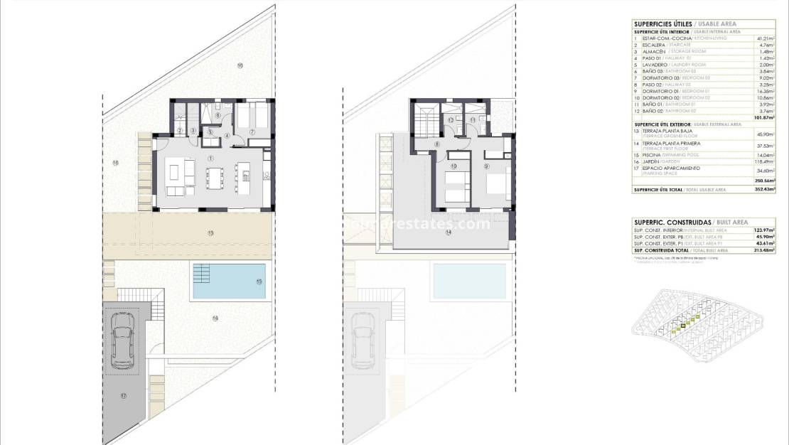 VILLAS DE OBRA NUEVA EN POLOP Nueva promoción de villas en Polop, le ofrece un espacio donde vivir plenamente el estilo de vida mediterráneo. Elija entre villas de 2 y 3 dormitorios en Polop diseñadas para captar la esencia del Mediterráneo y disfrutar del entorno en zonas exteriores. Lo más destacado de este proyecto son sus impresionantes vistas panorámicas de dos lugares únicos: la bahía de Altea con su mar azul profundo y las majestuosas montañas de Alicante con sus picos y vegetación. Déjate hipnotizar por estas increíbles vistas desde las terrazas de estas casas en Polop que además cuentan con amplios espacios que invitan a aprovechar el excepcional clima de la Costa Blanca y que podrás personalizar según tus preferencias. Sus dimensiones son ideales para instalar mesas, sillas, tumbonas o cualquier mobiliario de exterior que desee. El proyecto está pensado y diseñado para disfrutar del aire libre, no sólo con terrazas, sino también con jardines, porches y solariums en cada vivienda. Además, la mayoría de las casas en Polop ofrecen la opción de añadir una piscina privada (infinita o no, dependiendo de las características de la parcela). Alternativamente, quienes opten por una casa de una sola planta pueden optar por instalar un jacuzzi en el solarium. La distribución de estas villas está pensada para proporcionar comodidad en su día a día, con cocinas de concepto abierto totalmente equipadas, que incluyen placa de cocción, placa de inducción, horno, campana extractora y fregadero. Los baños también vienen equipados. Todas las unidades incluyen una plaza de aparcamiento en el precio. La ubicación es un lujo. Estarás situado a tan sólo 5 minutos del centro de "Polop de la Marina", un pueblo encantador que combina la tradición con una amplia gama de servicios: restaurantes, tiendas, supermercados, bancos, hospitales y todo lo que necesitas para tu vida diaria. Para completar una experiencia perfecta, muy cerca de las villas encontrará múltiples rutas para practicar senderismo y bicicleta de montaña, junto con un centro deportivo equipado con pistas de pádel. Además, para los amantes del golf, campos de renombre como Villaitana Golf, a menos de 15 minutos en coche, están a tiro de piedra. ¡Y eso no es todo! A 5 minutos en coche se está construyendo uno de los mayores complejos deportivos de España: "Ciudad del Deporte La Nucía". Allí ya se encuentra la prestigiosa Academia de Tenis Ferrer y el Estadio Olímpico Camilo Cano. Este complejo en desarrollo incluye un Centro de Fútbol, el principal parque de surf de España con piscinas de olas, alojamiento para deportistas y centros educativos. Y no podemos olvidar las impresionantes playas de la Costa Blanca, que se extienden a lo largo de 244 kilómetros de costa, y la hermosa Altea, uno de los pueblos más pintorescos del país. Además, encontrará campos de golf de primer nivel e infraestructuras como el aeropuerto de Alicante-Elche Miguel Hernández, a sólo 50 minutos en coche.