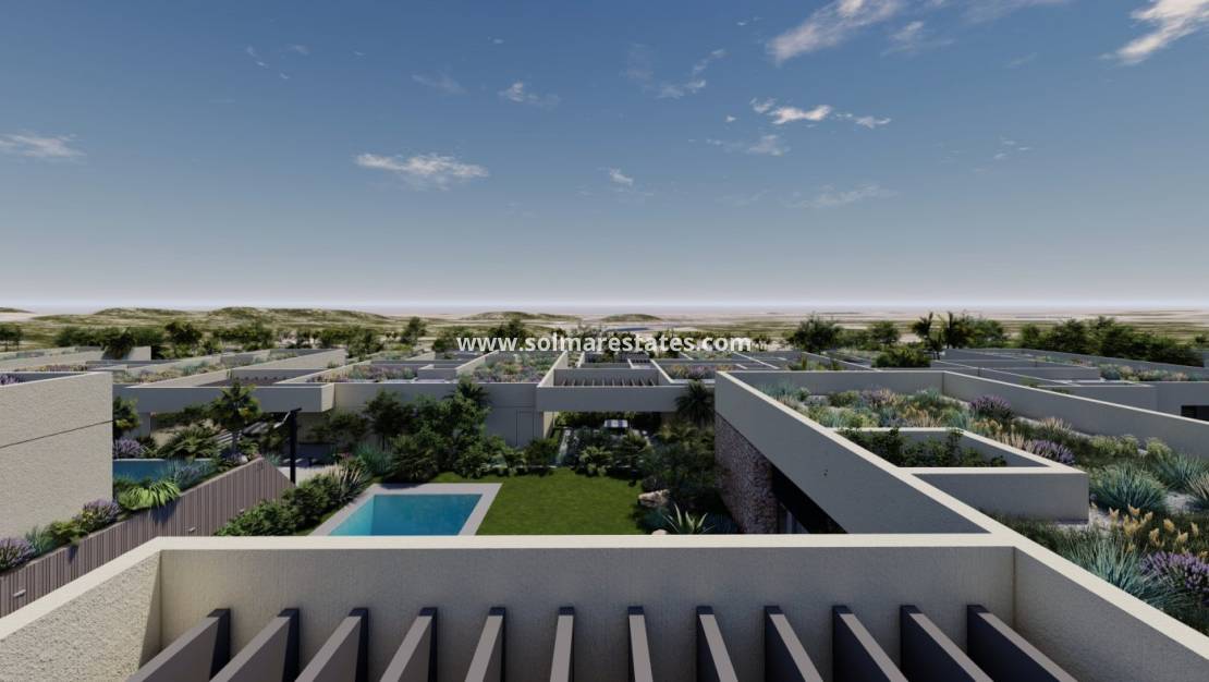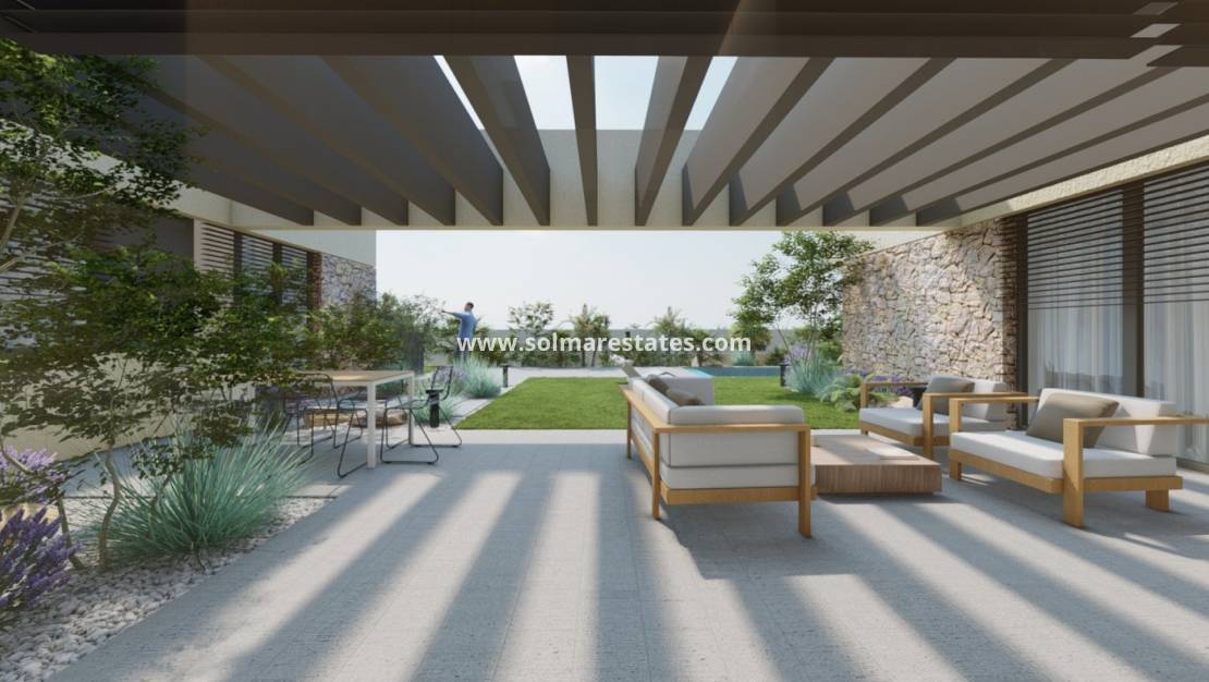 VILLAS DE OBRA NUEVA EN ALTOANA GOLF RESORT, MURCIA Residencial de nueva construcción de hermosas villas en Altaona Golf resort, Murcia. La villa tiene 4 dormitorios, 3 baños, cocina abierta con la zona del salón abd acceso directo al jardín con piscina privada y plaza de aparcamiento. Las villas están diseñadas específicamente para proporcionar vistas interminables del campo de golf, los lagos y el campo lejano, desde el interior o el exterior. Los jardines y las terrazas orientadas al sur permiten disfrutar del cálido sol de invierno, y las amplias ventanas de cristal ofrecen vistas adicionales de la región desde la comodidad del interior. Las villas se han diseñado para maximizar el confort, la privacidad y la eficiencia. Se han colocado plantas autóctonas en los tejados para crear la sensación de otro espacio natural Ubicados en un entorno privilegiado donde vivir tranquilamente, en contacto con la naturaleza y la montaña, se consigue calidad de vida, aire puro y espacios abiertos. Exclusivo residencial de Obra Nueva situado en Altaona Golf a tan solo 15 minutos en coche del centro de Murcia capital y a 15 minutos de las playas se puede disfrutar de la tranquilidad y seguridad que ofrece el Campo de Golf que cuenta con 18 hoyos y la comodidad de vivir cerca de todos los servicios. El amplio complejo cuenta con todo tipo de servicios como centro comercial, pistas de tenis, pádel y baloncesto. La puerta de entrada está siempre dotada de personal, lo que convierte a Altaona en un lugar donde los niños pueden jugar al aire libre sin peligro. En total, unas 500 viviendas conforman el complejo turístico de Altaona, repartidas en una superficie de 3,6 millones de m2. He aquí algunos aspectos destacados de la zona: - El centro de Murcia: 15 minutos. - La playa: 20 minutos. - Aeropuerto de Corvera: 20 minutos. - Aeropuerto de Alicante: 45 minutos. - Centro Comercial (La Alberca): 8 minutos. - Hospital: 10 minutos.