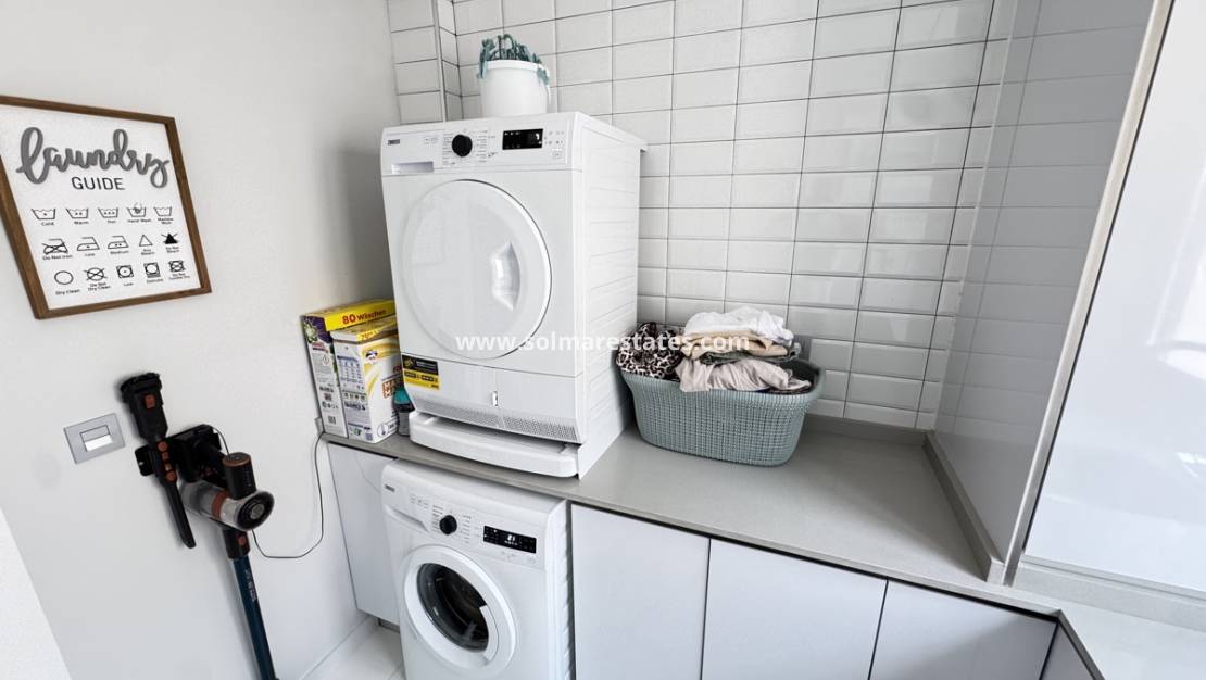 - Amplio lavadero con fregadero, muebles empotrados, lavadora y secadora.