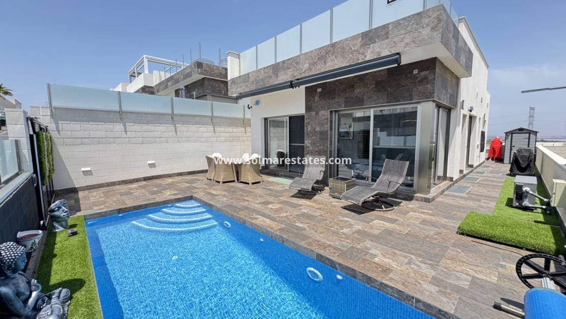 Esta impresionante villa con orientación sur, construida en 2023, ofrece una combinación única de diseño moderno, sostenibilidad y lujo. Con su solárium en la azotea y sus espacios interiores y exteriores de hermoso diseño, esta propiedad es perfecta para quienes buscan un estilo de vida de lujo.
