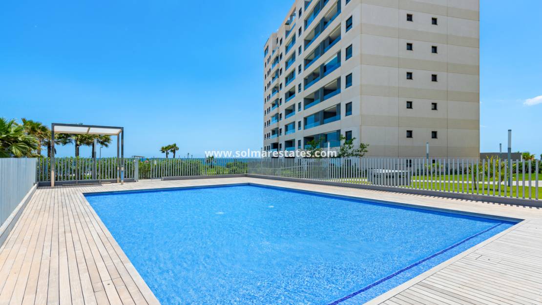 Este fantástico apartamento de lujo de 2 dormitorios se encuentra en la quinta planta de una prestigiosa urbanización en primera línea de mar en la cotizada zona de Punta Prima, Alicante . Con vistas panorámicas al mar y acabados de alta gama, esta vivienda ofrece la combinación perfecta de estilo, comodidad y ubicación .