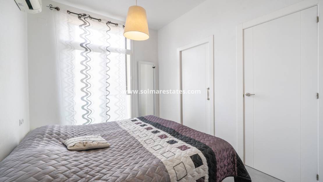 La villa ofrece 78 m² de espacio habitable con 2 amplios dormitorios y 2 baños, uno de ellos en suite. La cocina americana, de concepto abierto y con isla central, se integra a la perfección con un luminoso salón. Tanto los dormitorios como el salón disponen de aire acondicionado para garantizar la comodidad durante todo el año.
