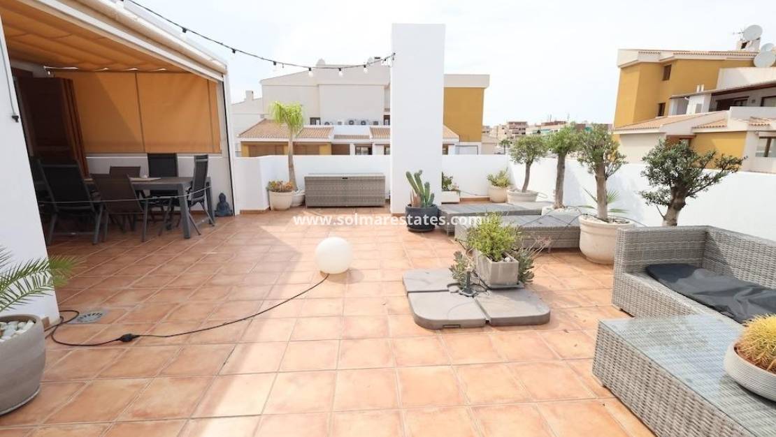 Ático en el complejo residencial La Entrada en Punta Prima. La propiedad tiene una superficie total de 70 m² y consta de 2 dormitorios, 1 baño y un amplio salón con cocina americana.