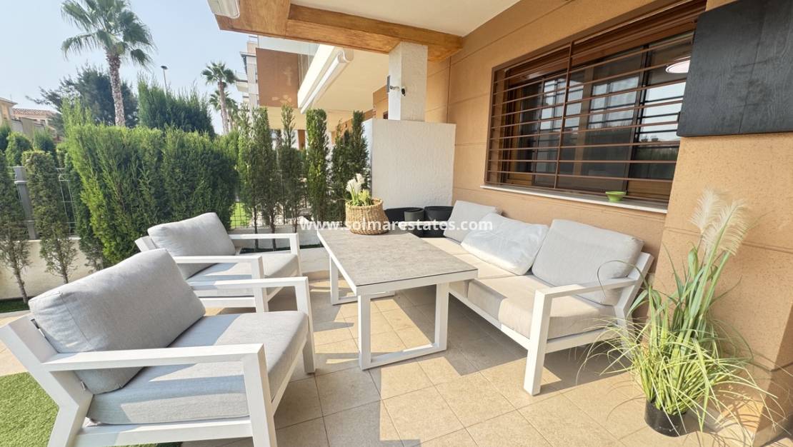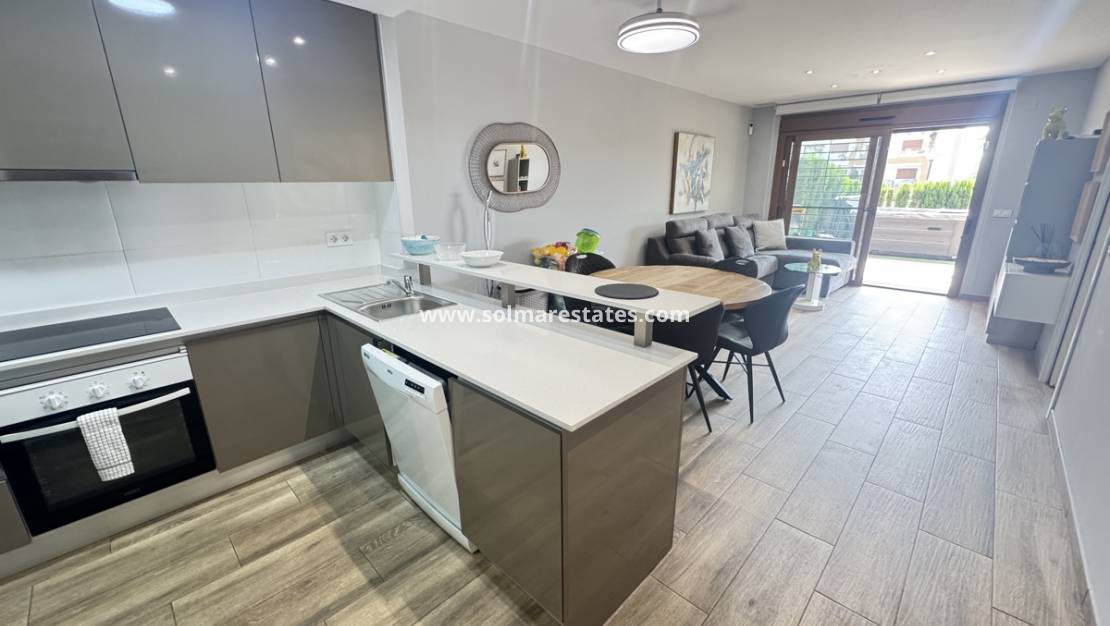 Experimente la vida mediterránea moderna con este elegante apartamento en planta baja de 2 dormitorios y 2 baños en el prestigioso complejo TM Gala, Los Dolses.