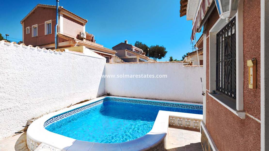 Oportunidad única de adquirir una villa adosada de 2 o 3 dormitorios con piscina privada, en una ubicación privilegiada en el corazón del pueblo de Pinar de Campoverde. A pocos pasos de una amplia selección de bares, restaurantes, tiendas, un centro de salud y una farmacia, esta propiedad también se encuentra a tan solo 10 km de las playas con Bandera Azul de Torre de la Horadada y Mil Palmeras.