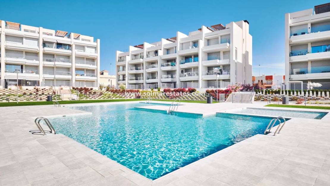 El apartamento cuenta con un amplio salón-comedor de planta abierta con una cocina moderna totalmente equipada y acceso a un lavadero independiente. Las puertas corredizas llenan la estancia de luz natural y dan a una terraza privada. El dormitorio principal cuenta con armarios empotrados, baño en suite con ducha a ras de suelo y acceso a la terraza. El segundo dormitorio doble también cuenta con armarios empotrados y está convenientemente ubicado junto al segundo baño familiar, también con ducha a ras de suelo.