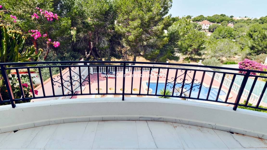 La zona de la piscina en la parte trasera da a la zona verde e incluye un revestimiento completo de azulejos, un bar al aire libre, una barbacoa de obra y una zona cubierta para sentarse, ideal para el entretenimiento. Hay un amplio espacio de almacenamiento debajo de la piscina. La villa se vende amueblada y lista para entrar a vivir.