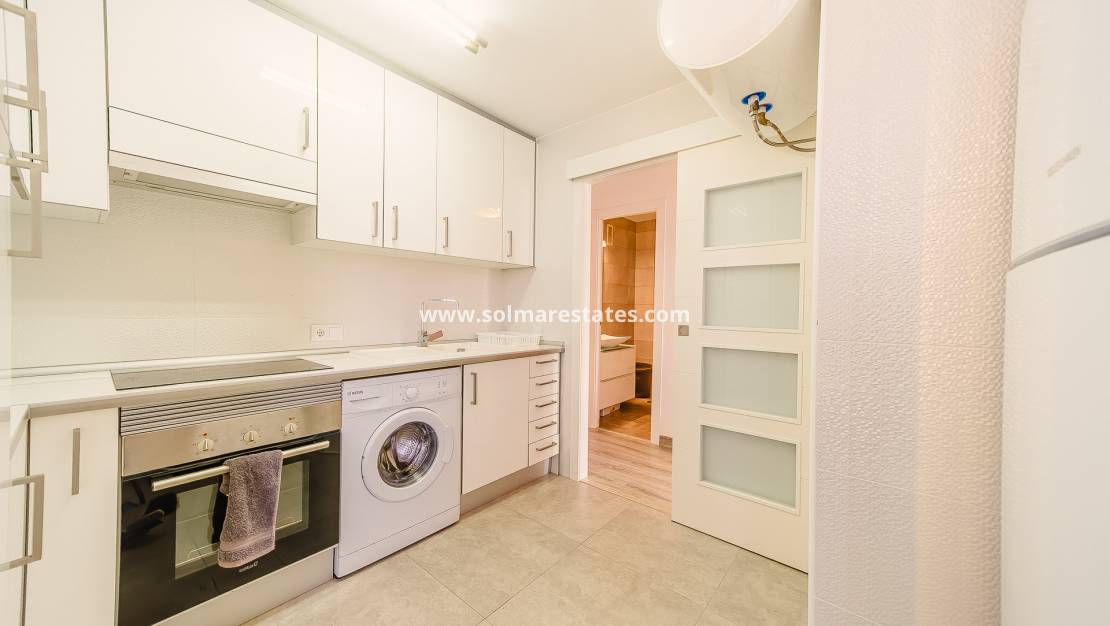 Disfrute de impresionantes vistas al mar desde este apartamento en primera línea, completamente renovado, en Playa del Cura, Torrevieja. A solo 50 metros de la playa y rodeado de bares, restaurantes y tiendas, esta propiedad ofrece la combinación perfecta de ubicación, comodidad y estilo.
