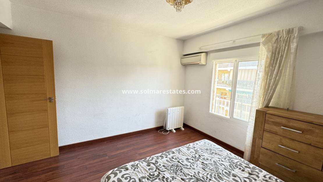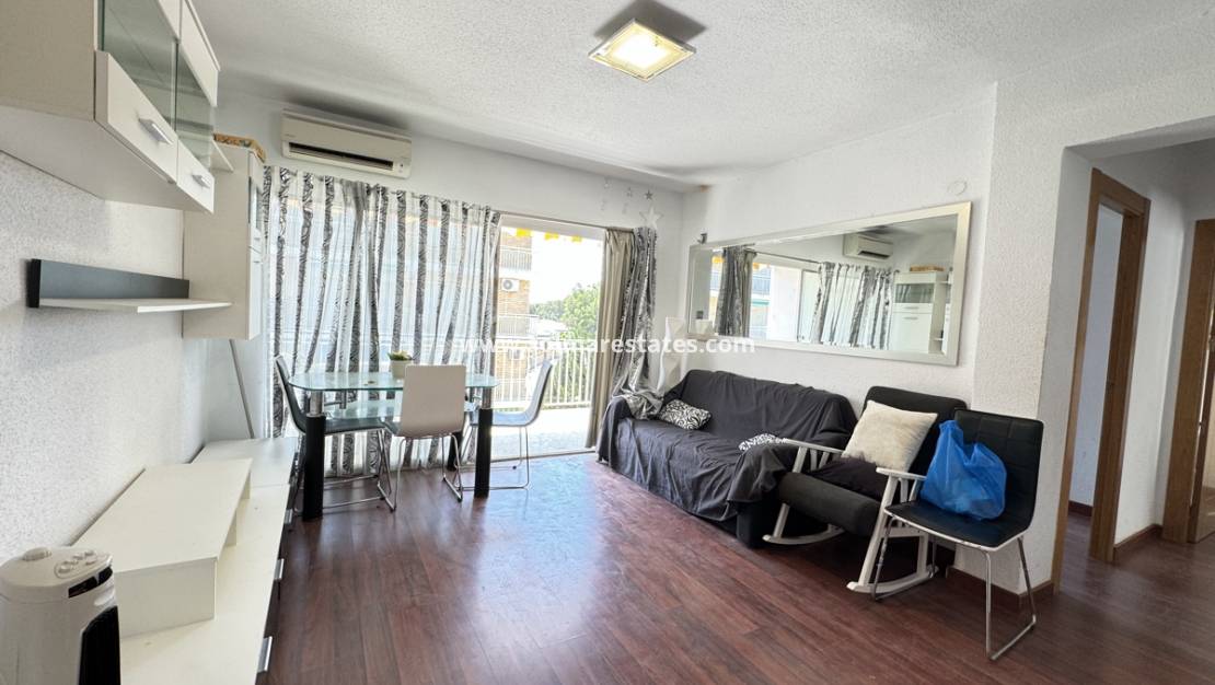 La distribución incluye un amplio salón-comedor, cocina independiente, baño y dos dormitorios con armarios empotrados. Las puertas del salón dan a un amplio balcón, ideal para relajarse y disfrutar del clima mediterráneo.