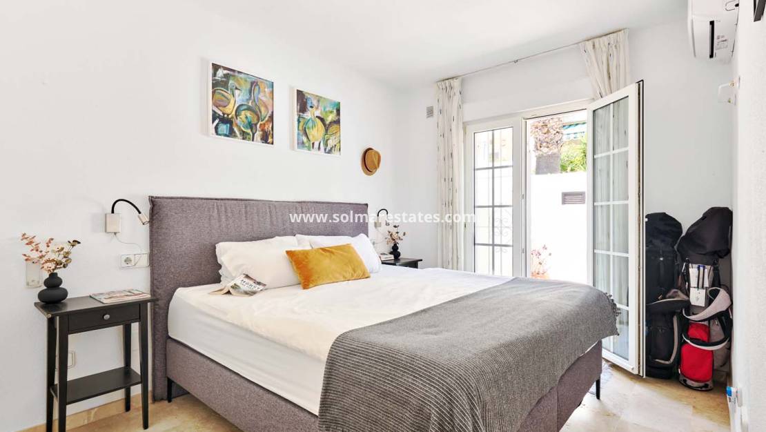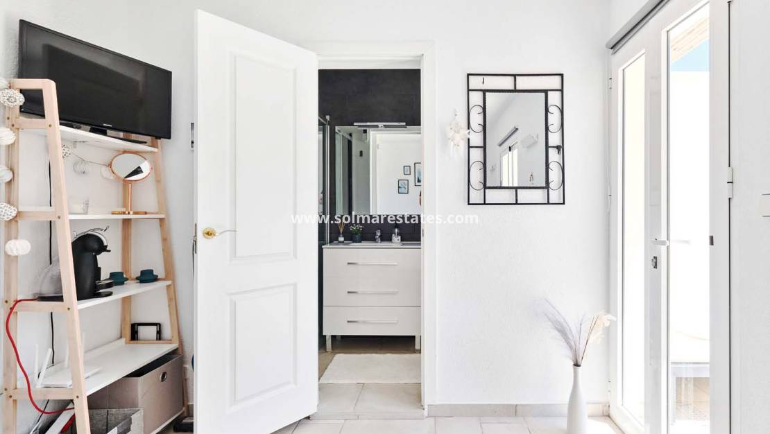 Tercer dormitorio en el primer piso con baño en suite, aire acondicionado y acceso a una gran terraza solárium.