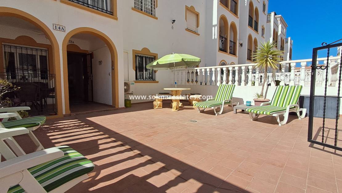 Este encantador apartamento en planta baja de 2 dormitorios y 1 baño está situado en la popular urbanización Molino Blanco en La Zenia , en la hermosa Costa Blanca de España.