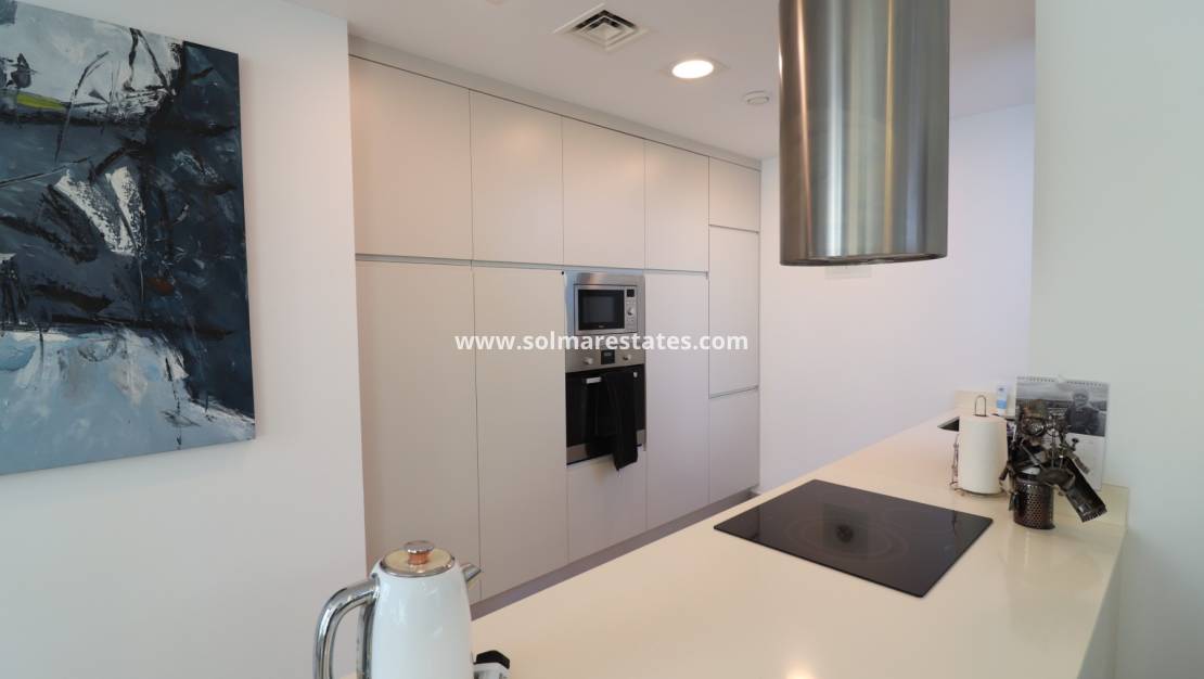 La moderna cocina americana incluye un lavadero independiente. Los tres dormitorios dobles cuentan con armarios empotrados, aire acondicionado y acceso directo al jardín. La suite principal cuenta con vestidor y baño privado con ducha. Un elegante baño familiar con ducha completa el interior.