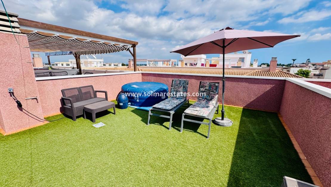 Una característica destacada de esta propiedad es su sección privada del solárium en la azotea : un área soleada y espaciosa perfecta para relajarse, entretenerse o simplemente disfrutar de las impresionantes vistas durante todo el día.