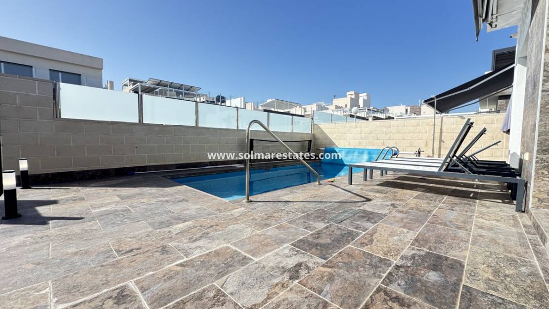 Ubicada en una zona tranquila y práctica, esta villa se encuentra a poca distancia a pie de tiendas, restaurantes y zonas de ocio . La popular Plaza de Villamartín y el campo de golf están a poca distancia en coche, mientras que las playas con bandera azul de Orihuela Costa se encuentran a menos de 10 minutos.